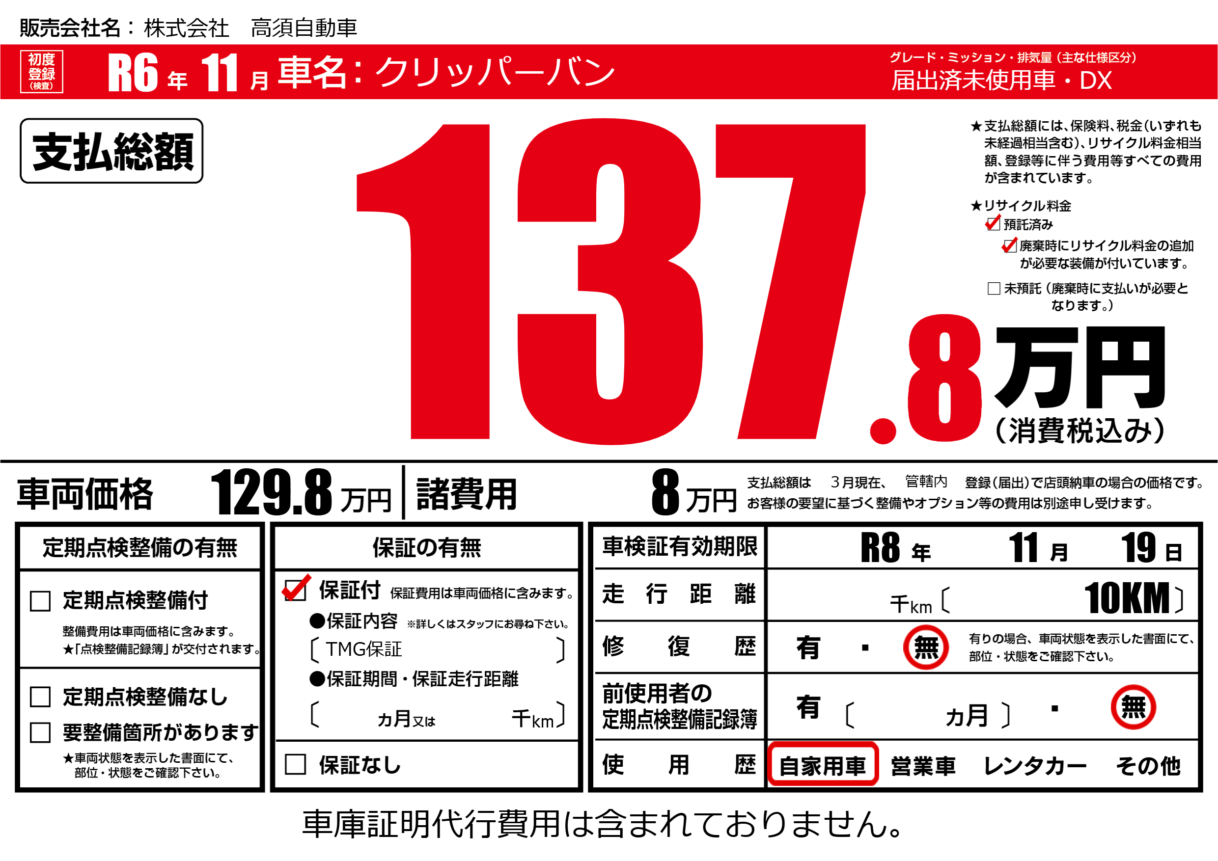 保証付き 保証内容(TMG保証) ---ヶ月または()千kmまで |