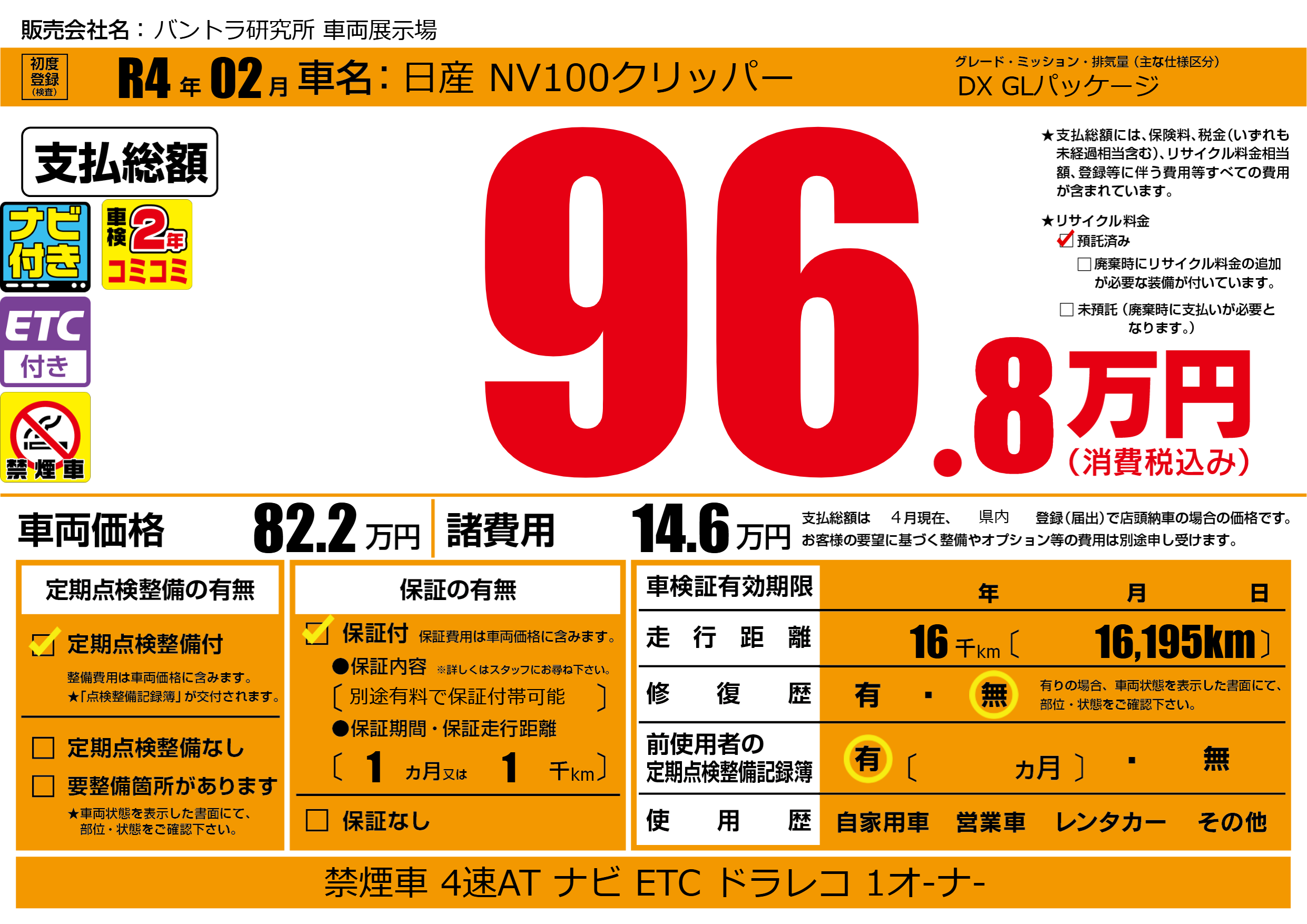 | 車名 | 日産 NV100クリッパー | グレード ミッション 排気量 |