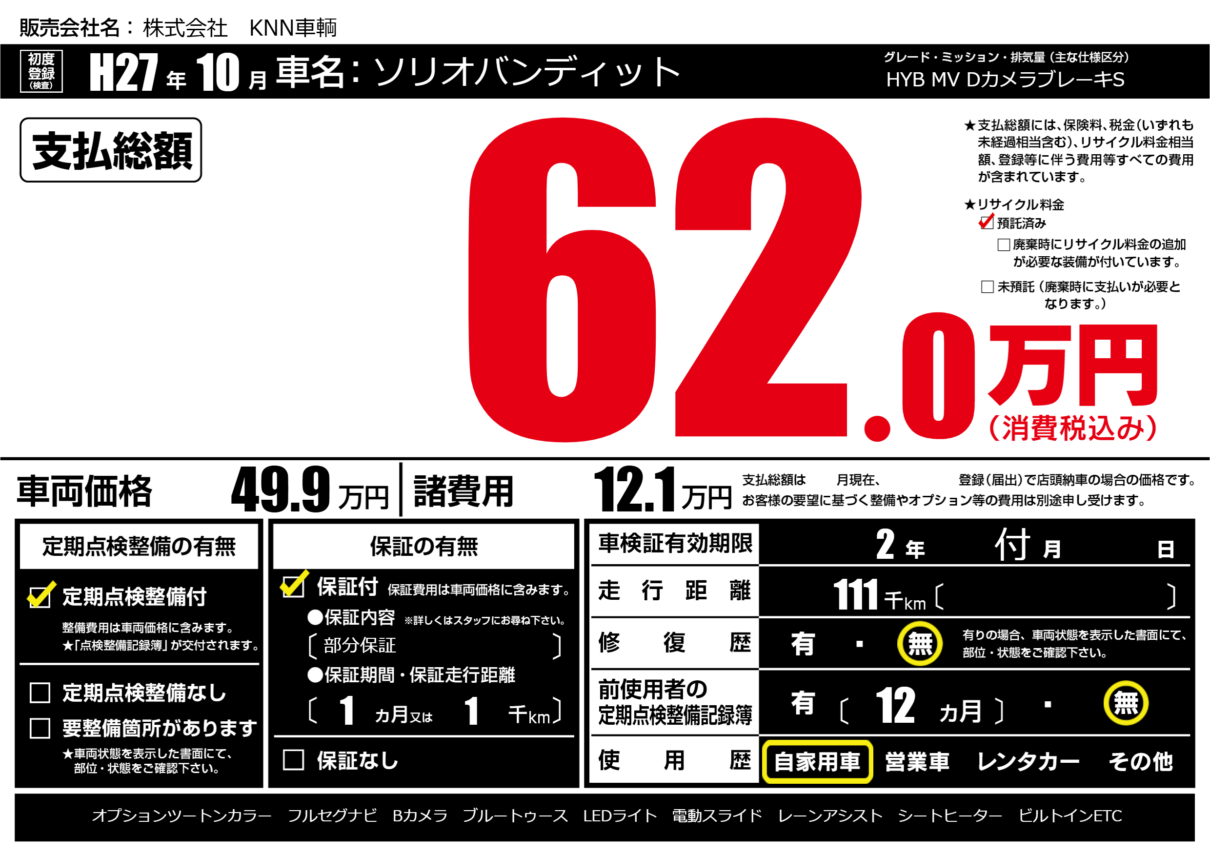 | 走行キロ | 11.1万km | 初年度登録 | H27年10月 |