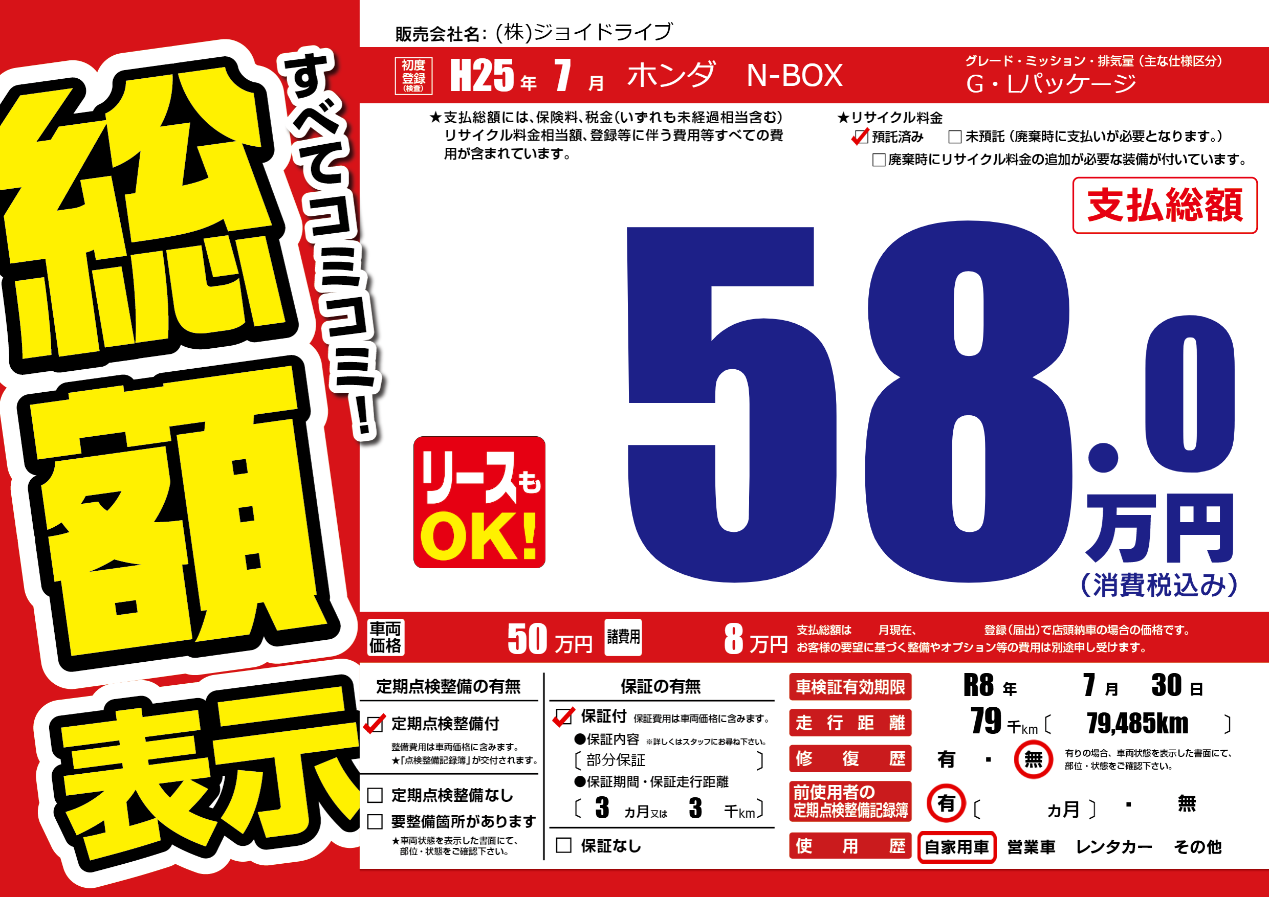 なし | 車検制限 | R8年7月30月 |