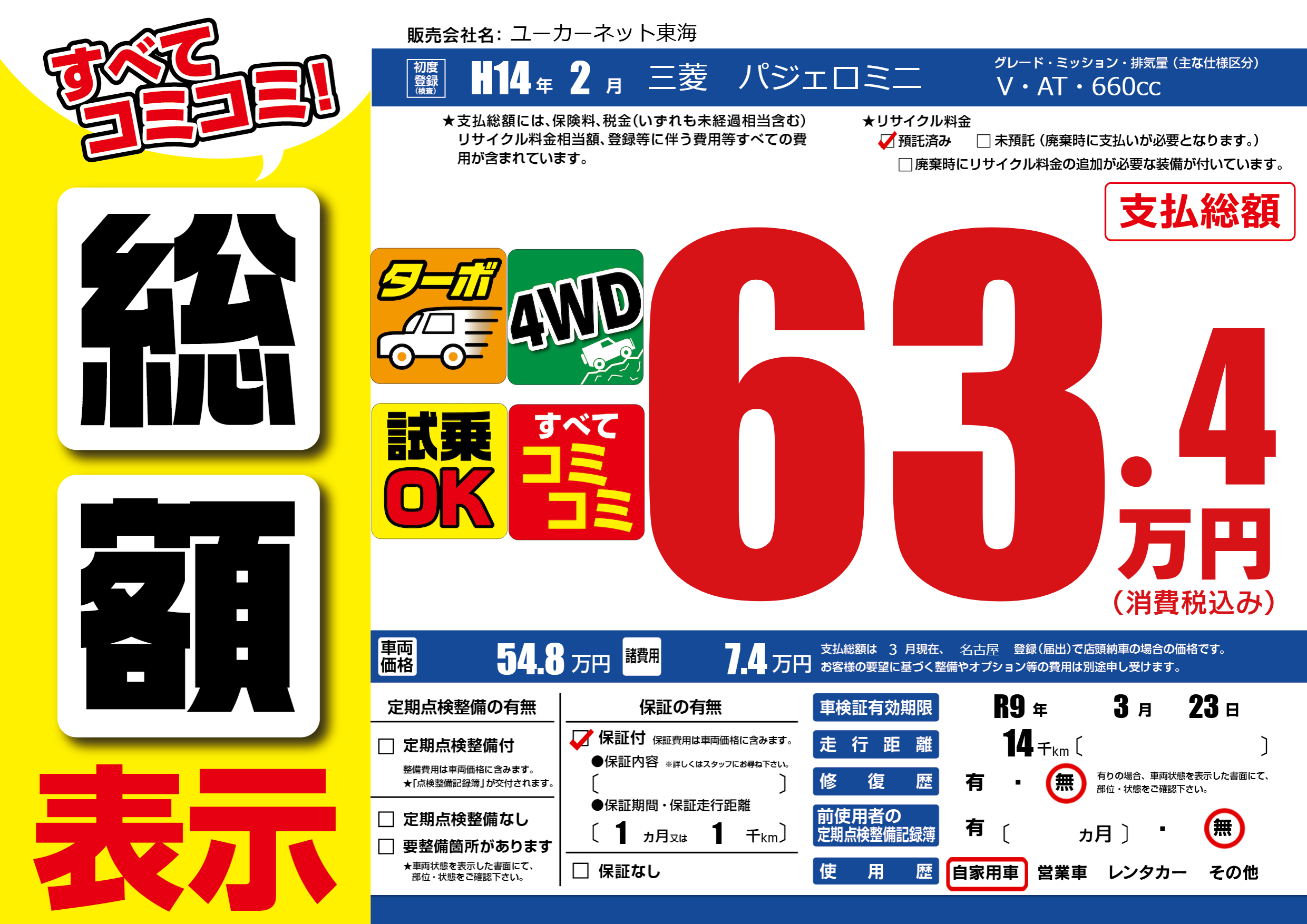 なし | 車検制限 | R9年3月23月 |