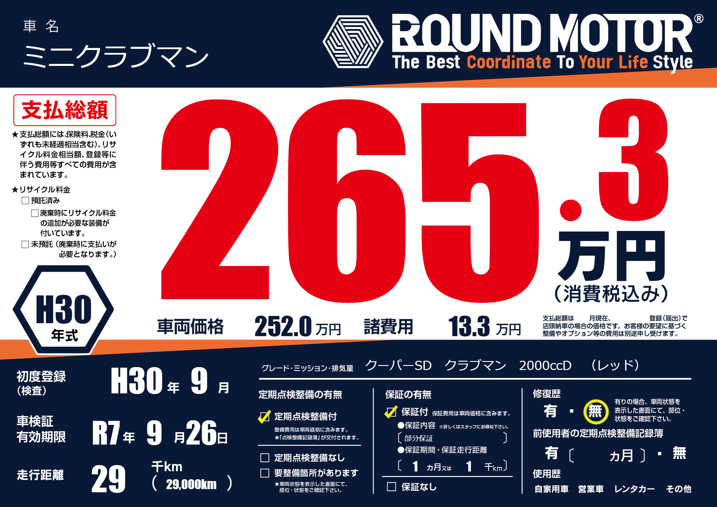 | 車名 | ミニクラブマン | グレード ミッション 排気量 |