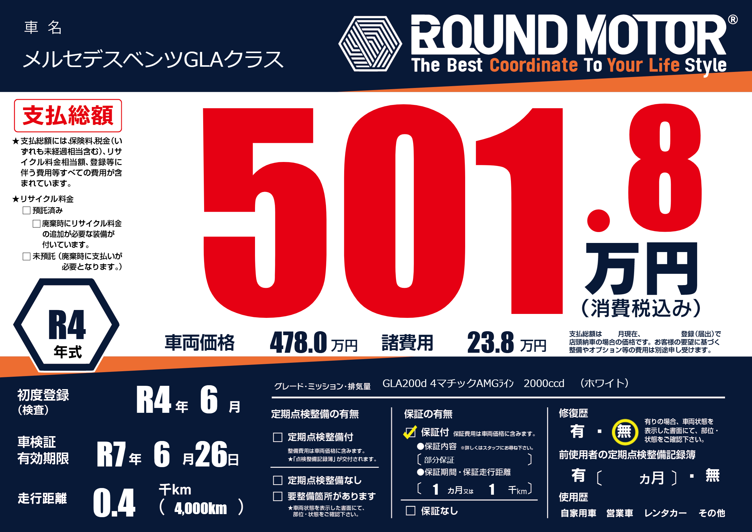 GLA200d 4マチックAMGライン 2000ccd (ホワイト) |