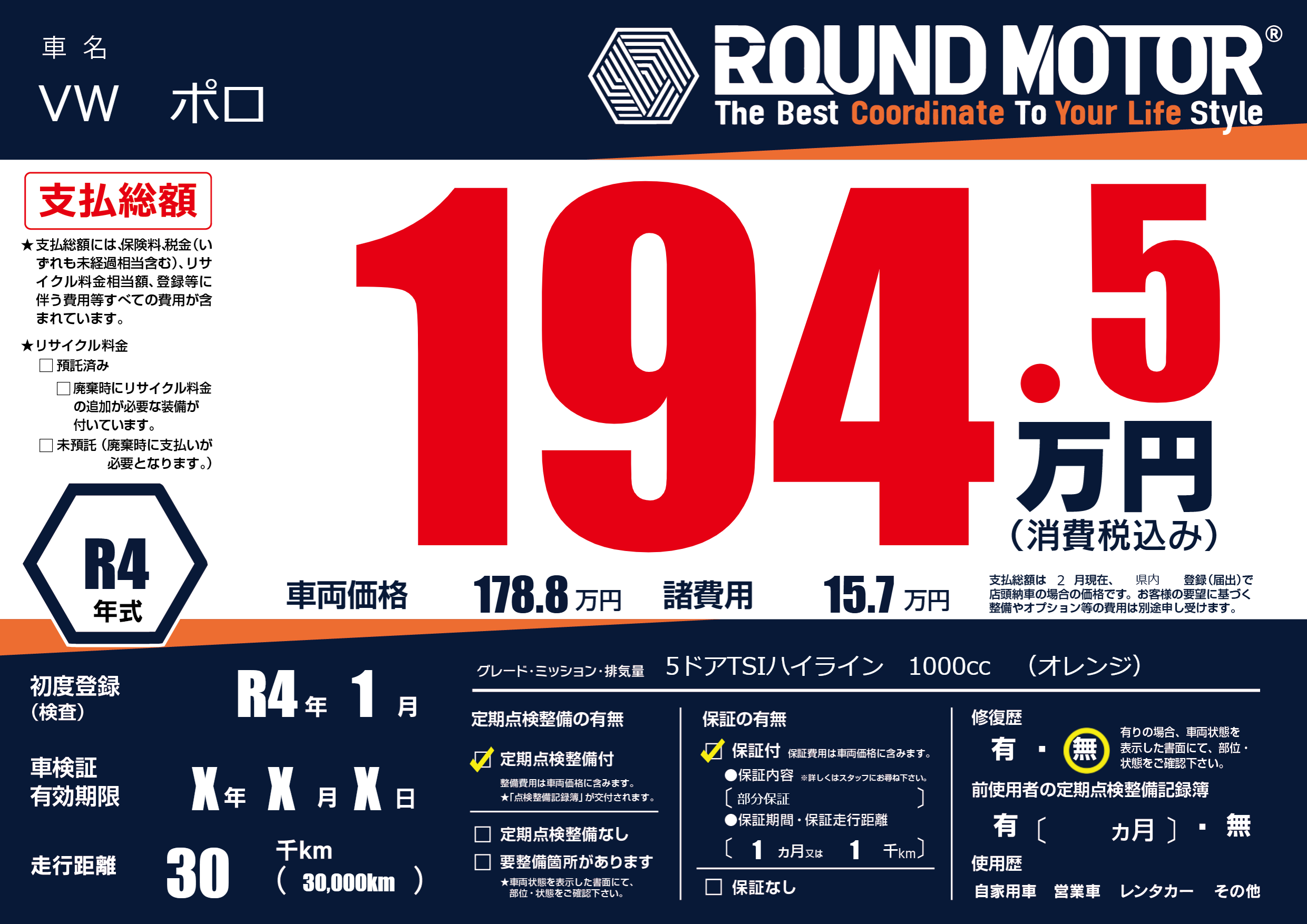 | 車検制限 | X年 X月 X日 | ||