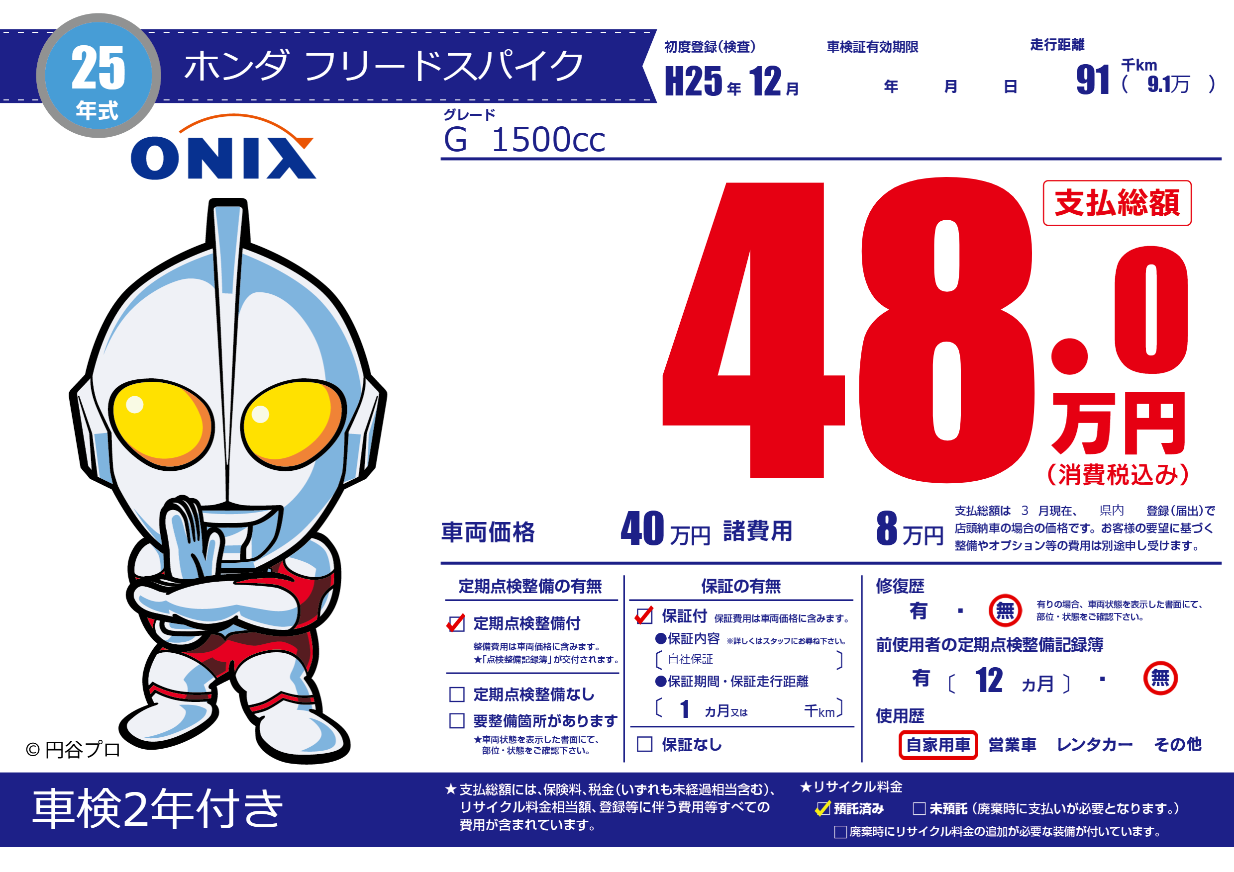| 走行キロ | 9.1万km | 初年度登録 | H25年12月 |