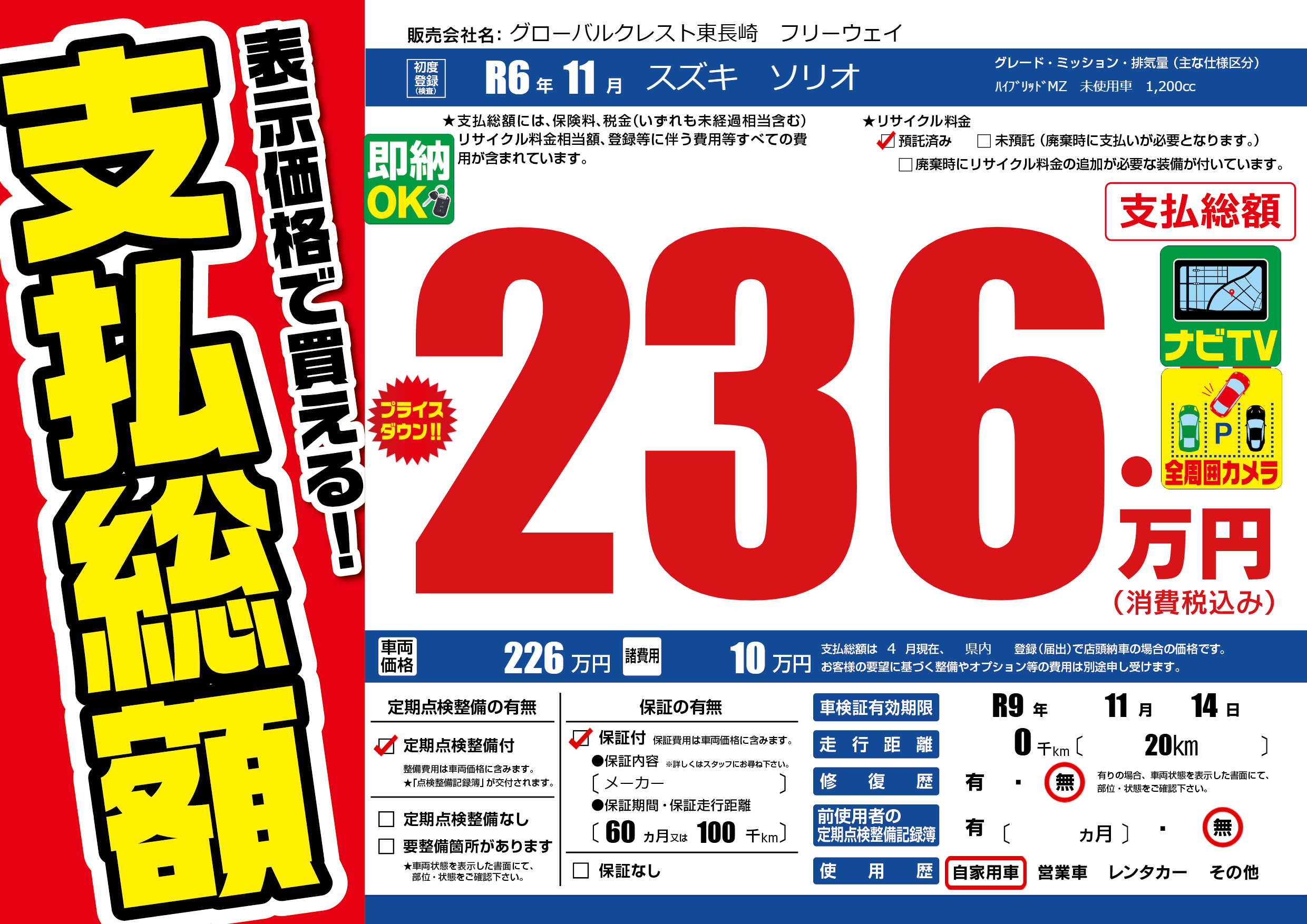 | 走行キロ | - | 初年度登録 | R6年11月 |