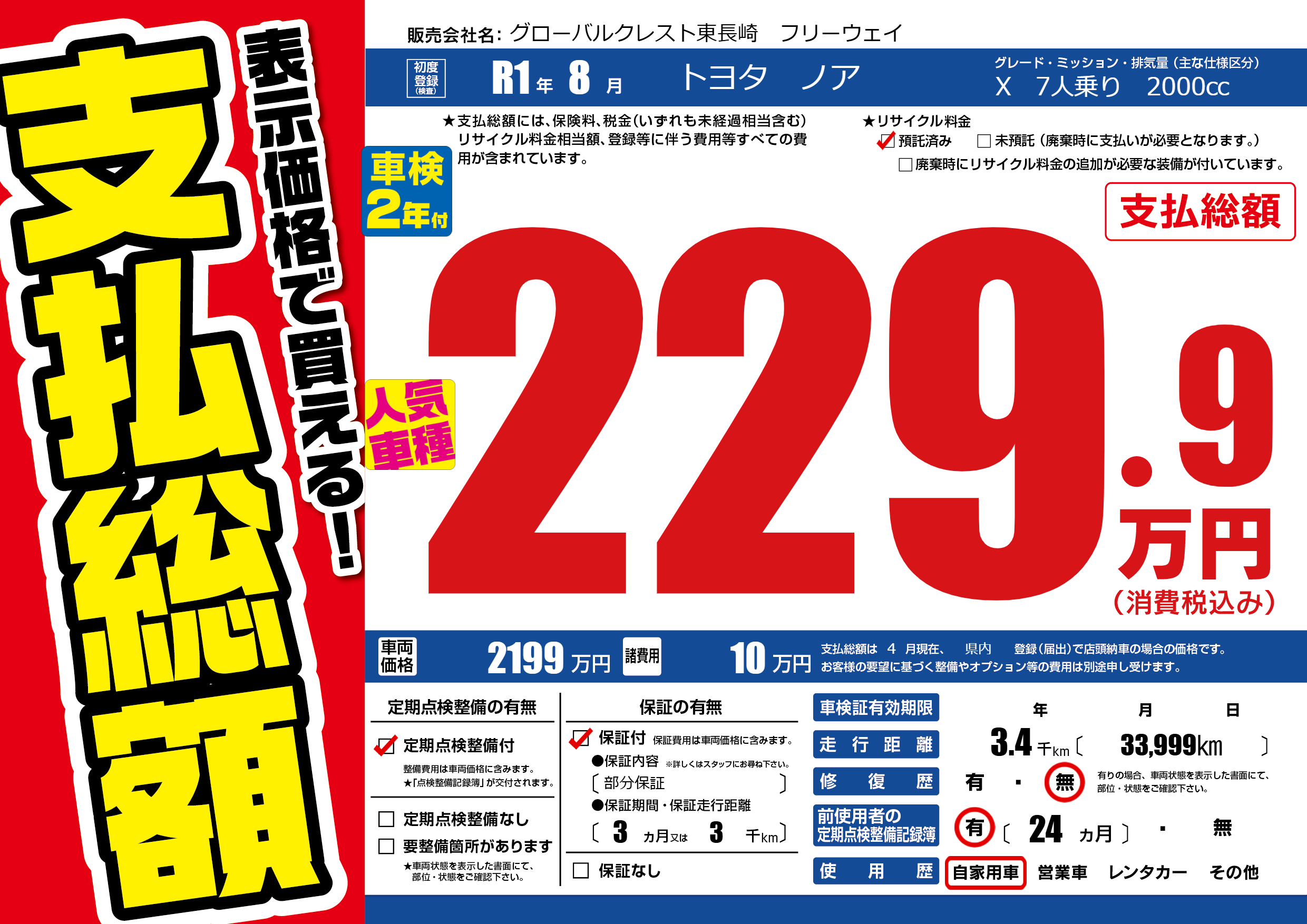 | 走行キロ | 0.3万km | 初年度登録 | R1年8月 |