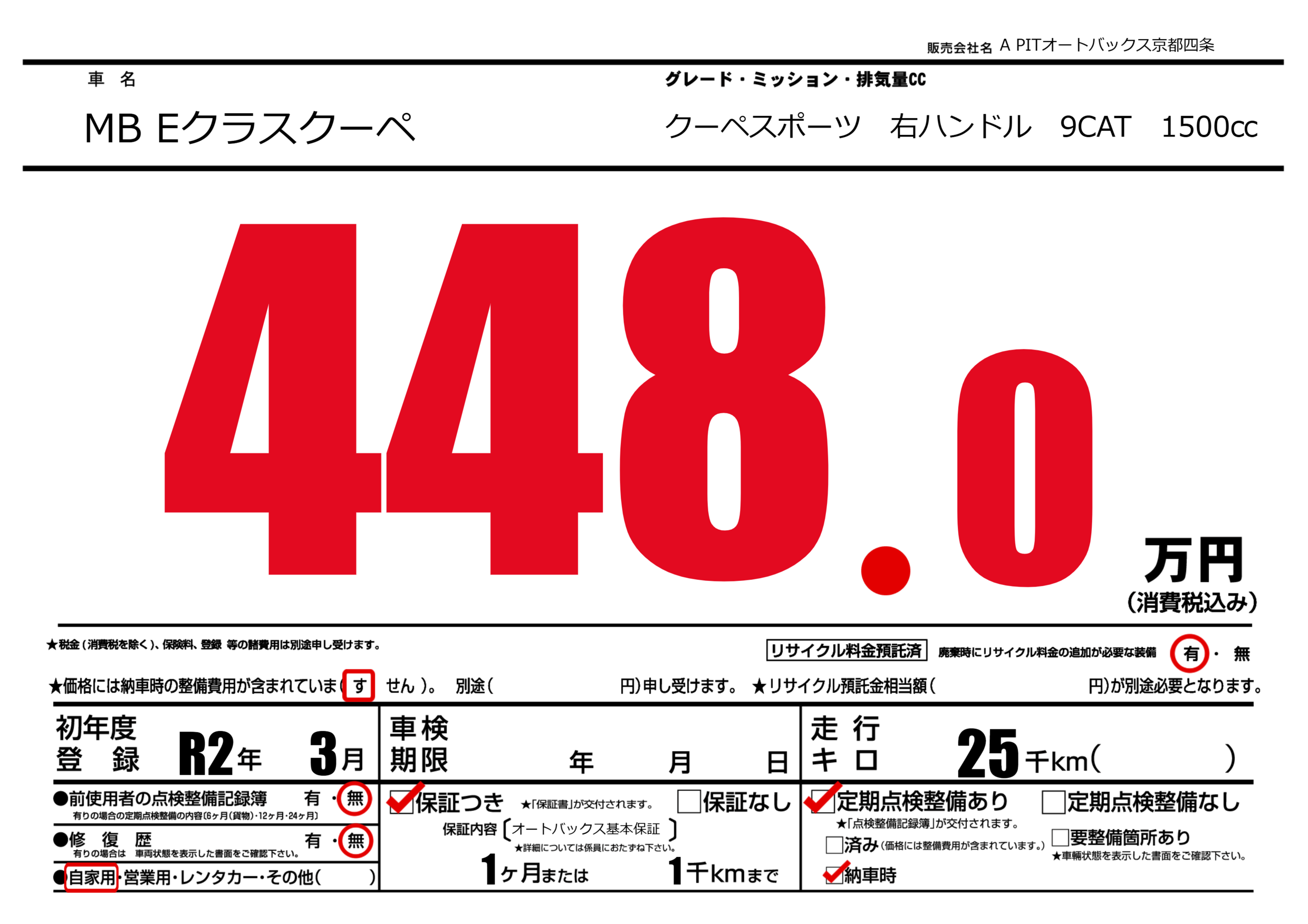 | 定期点検整備 | 定期点検整備あり 納車時あり | ||