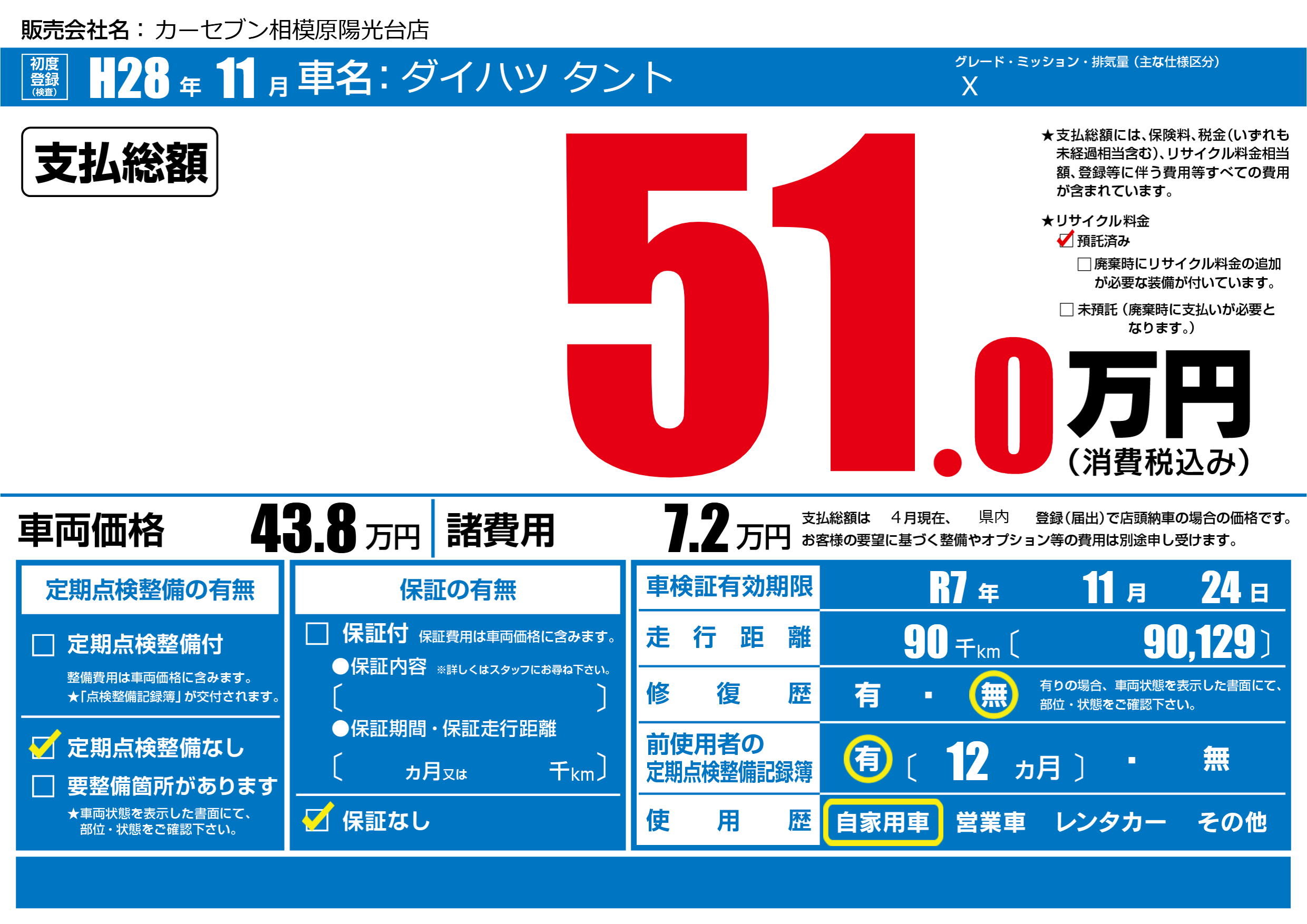 なし | 車検制限 | R7年11月24月 |