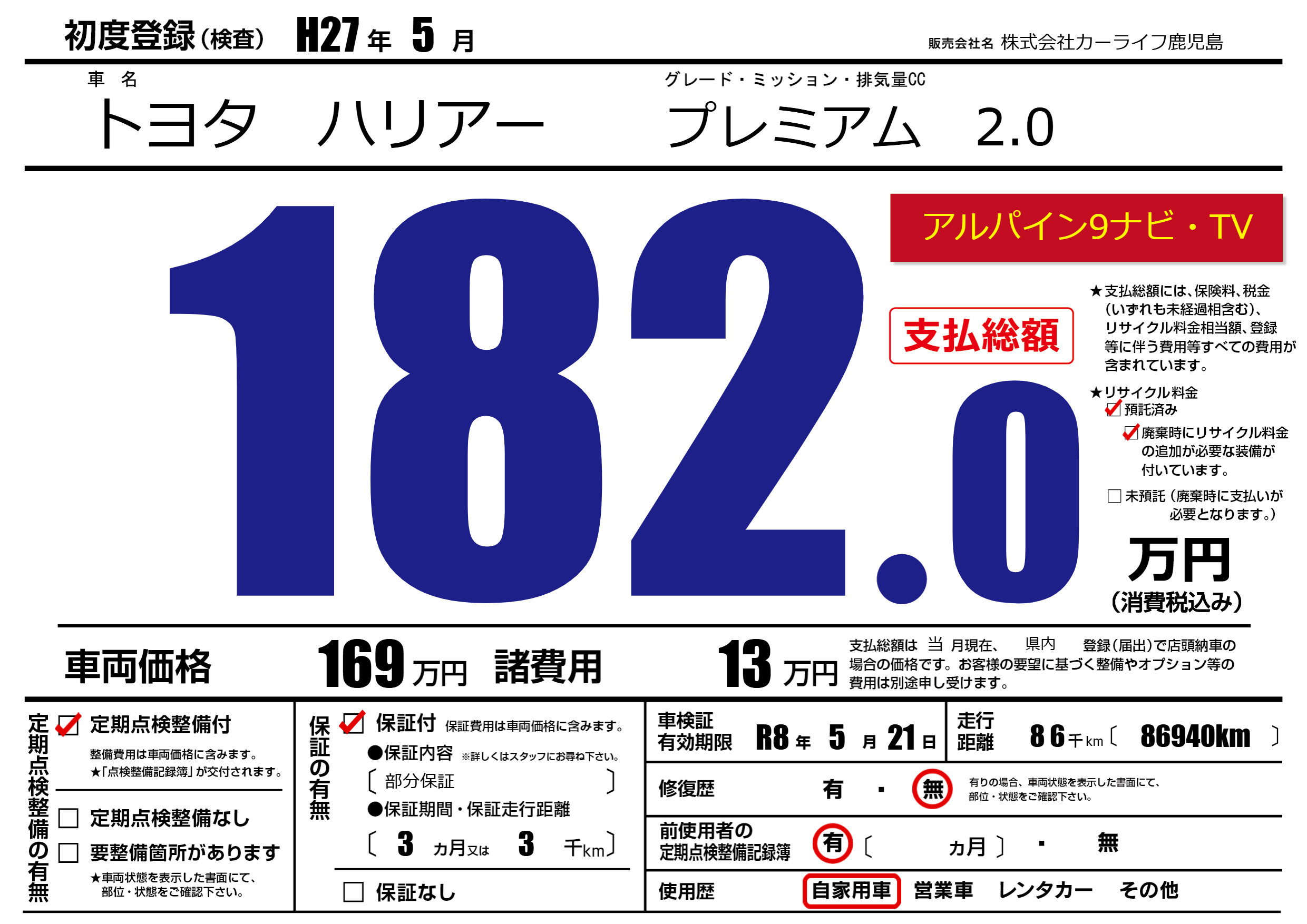 | 定期点検整備 | 定期点検整備あり | ||