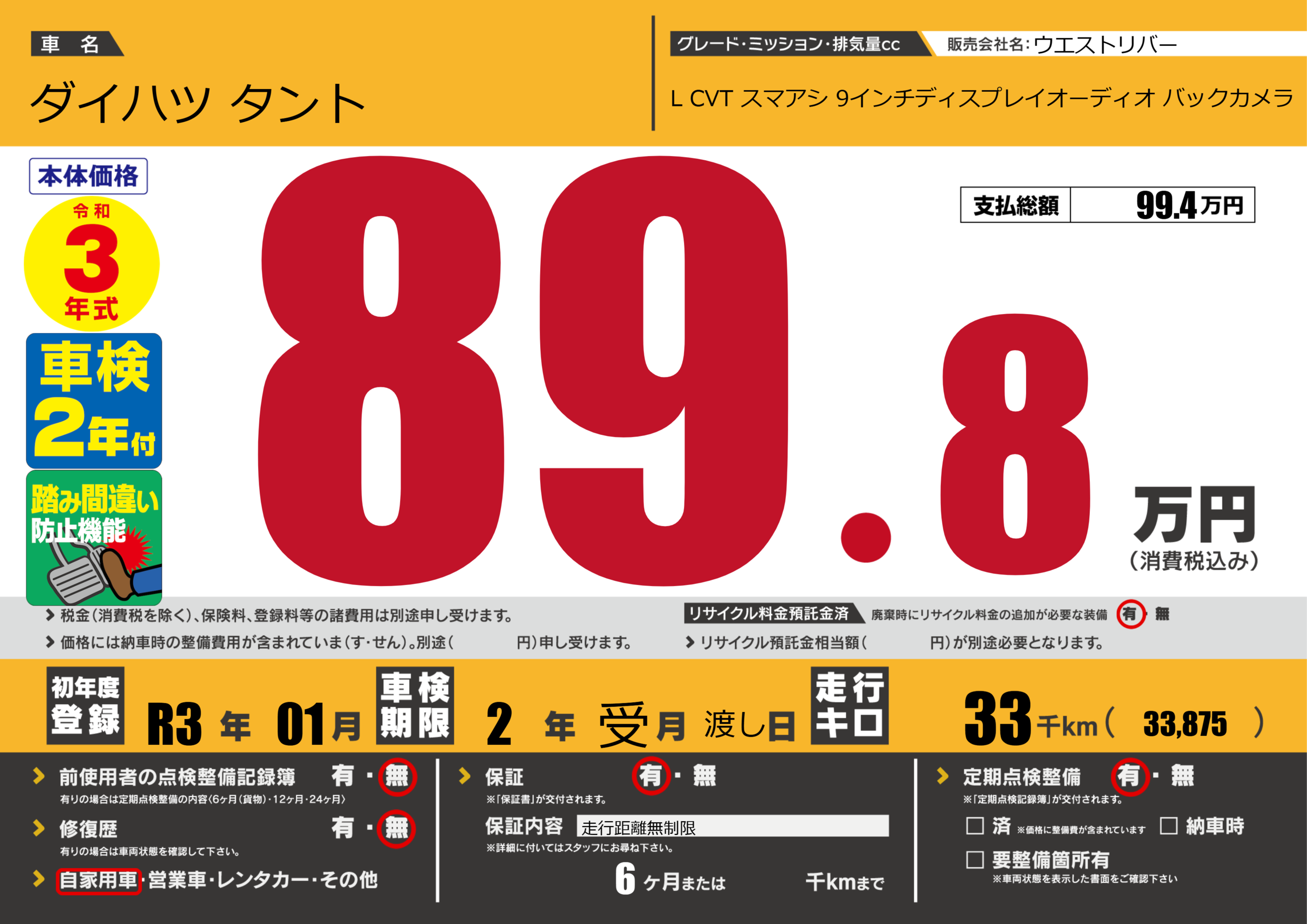 なし | 車検制限 | 2年受月渡し月 |