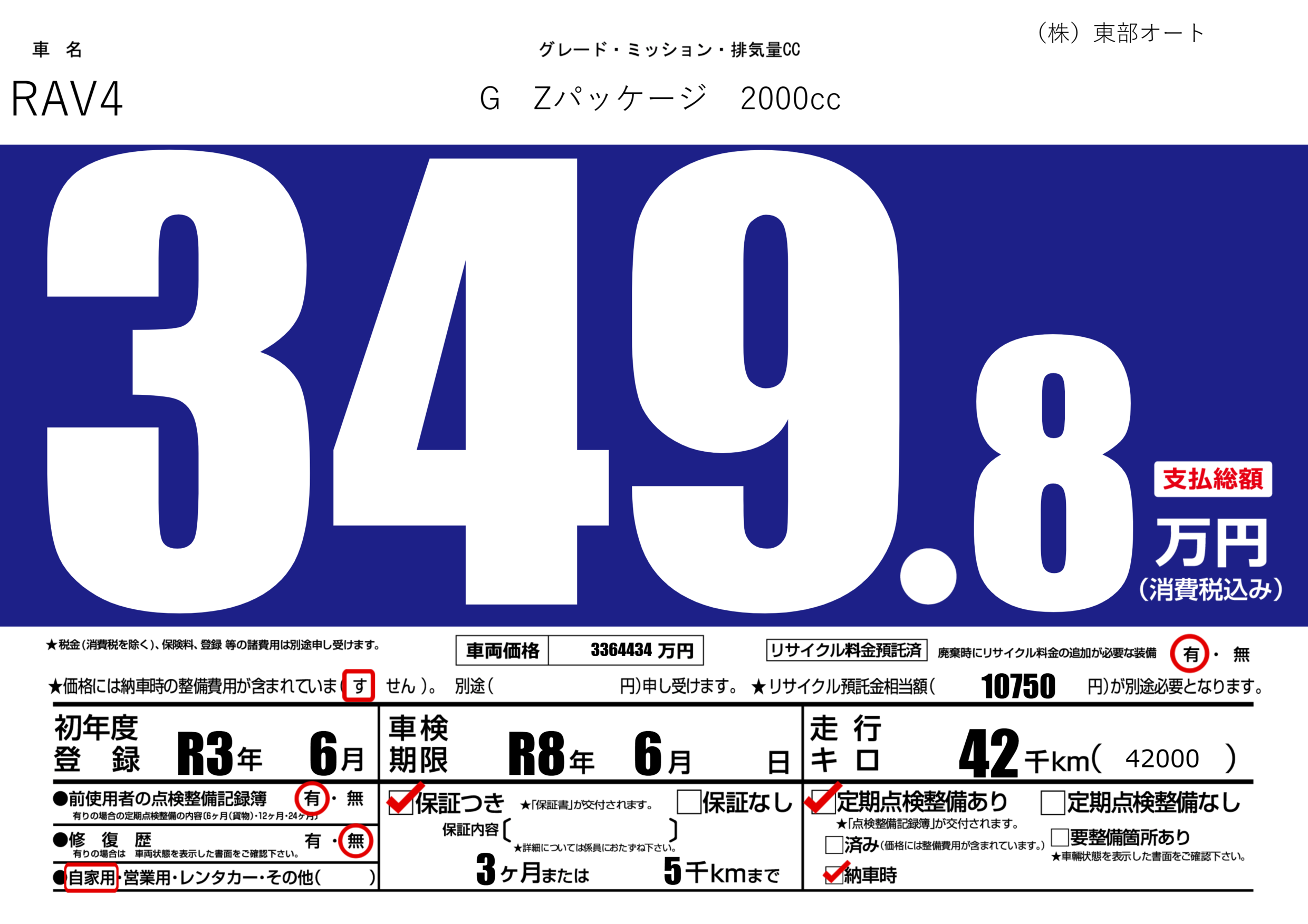 | 車検制限 | R8年 6月 - 日 | ||