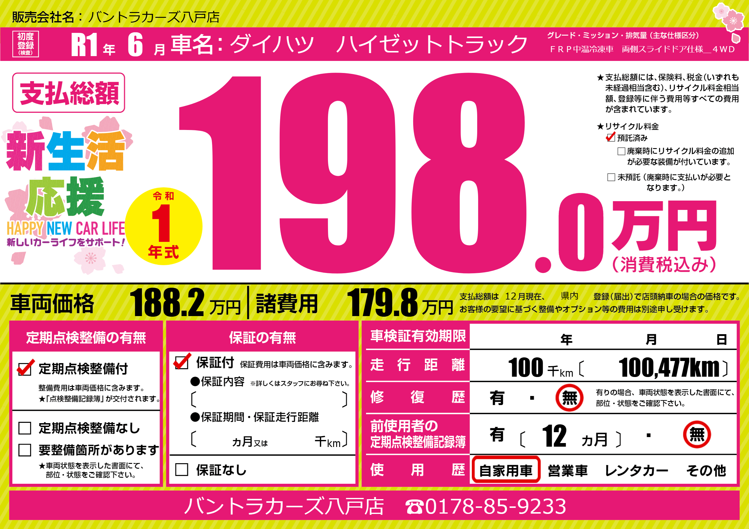 | 走行キロ | 10万km | 初年度登録 | R1年6月 |