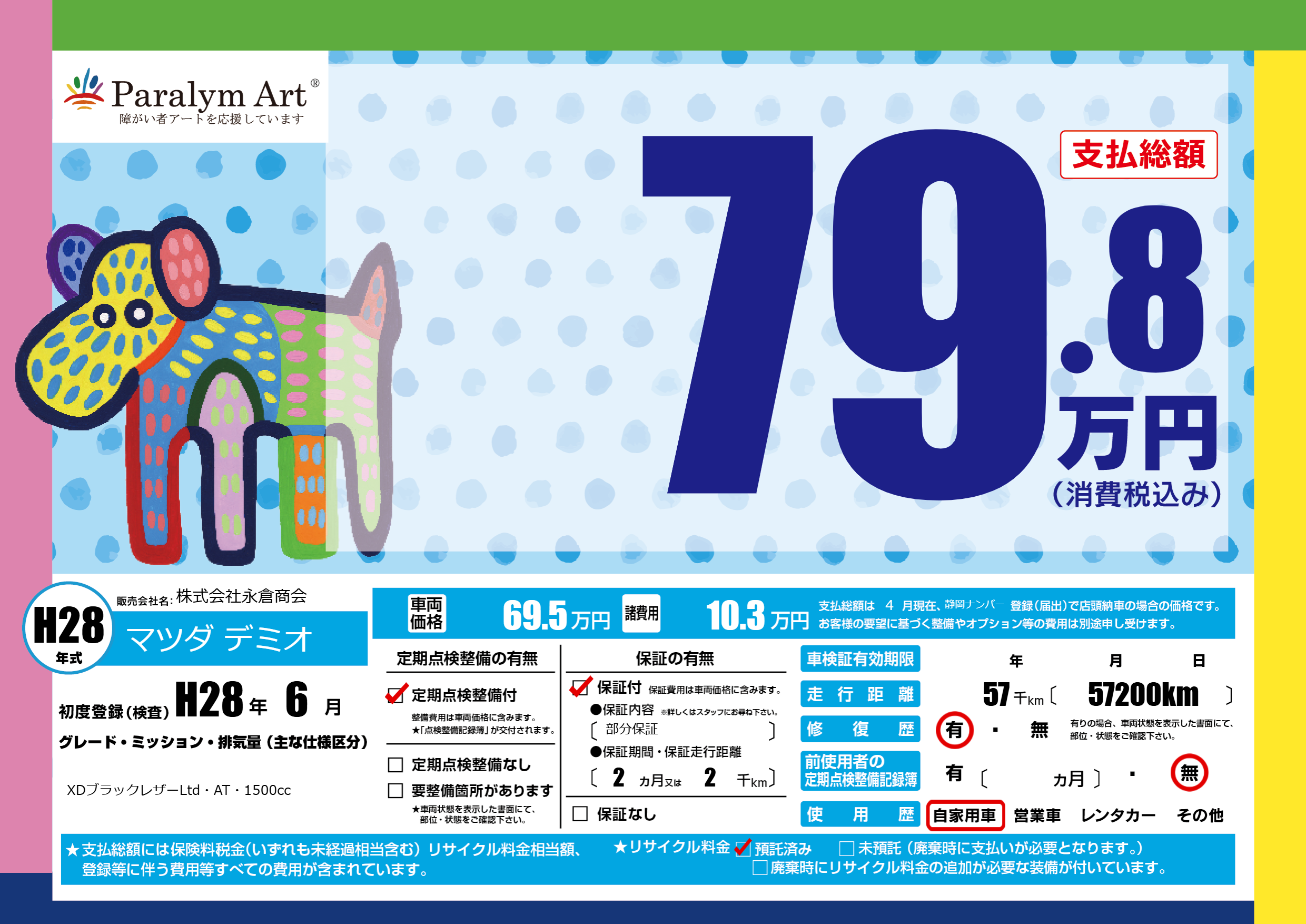 | 車名 | マツダ デミオ | グレード ミッション 排気量 |