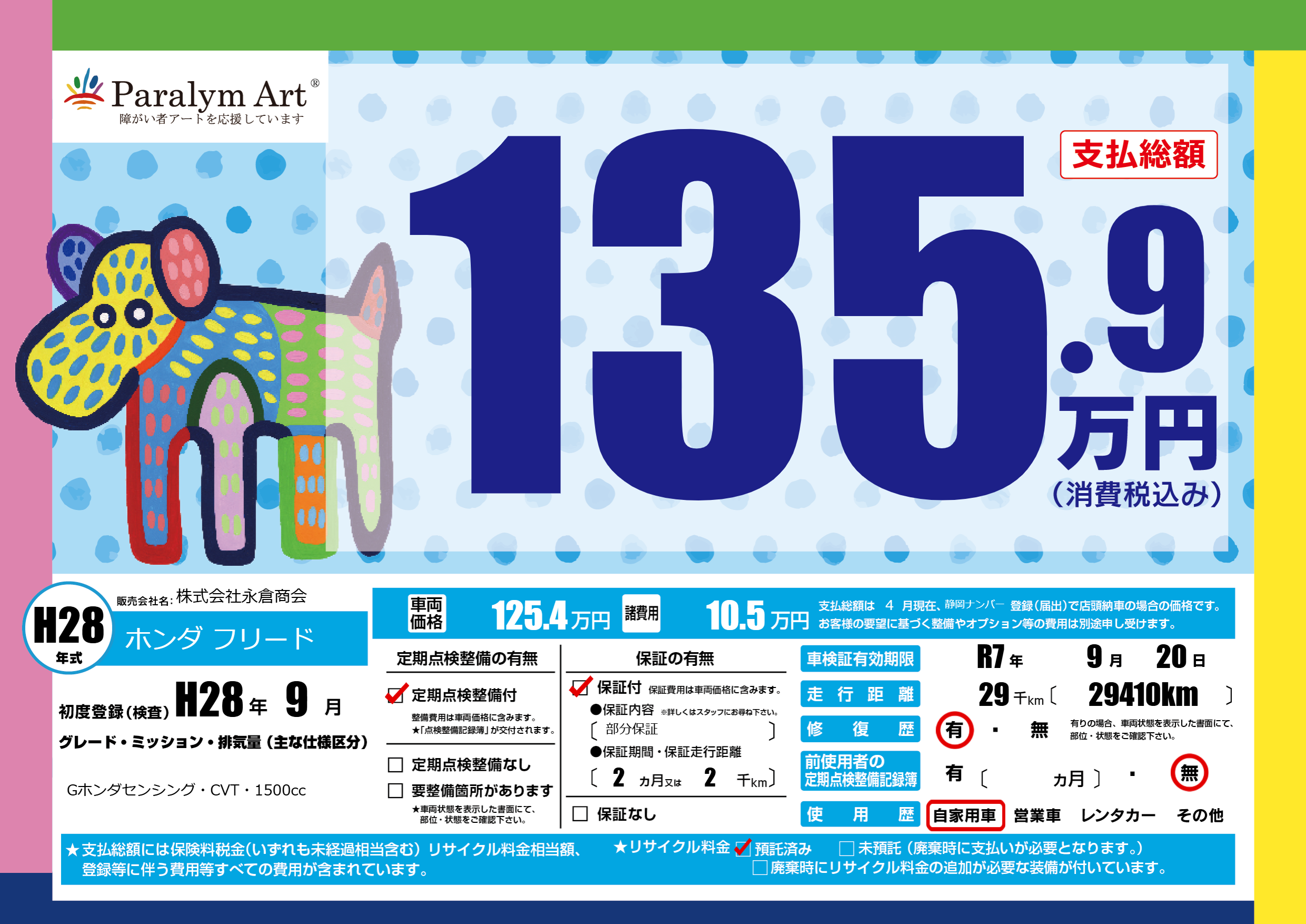 | 車検制限 | R7年 9月 20日 | ||