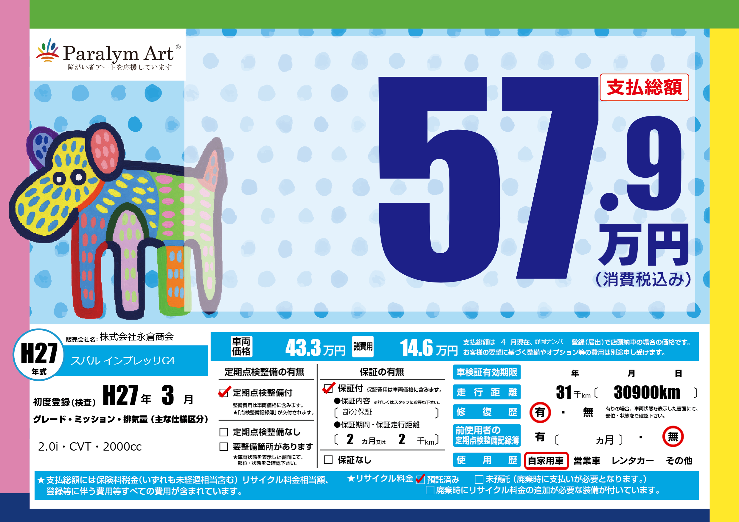 | 車名 | スバル インプレッサG4 | グレード ミッション 排気量 |