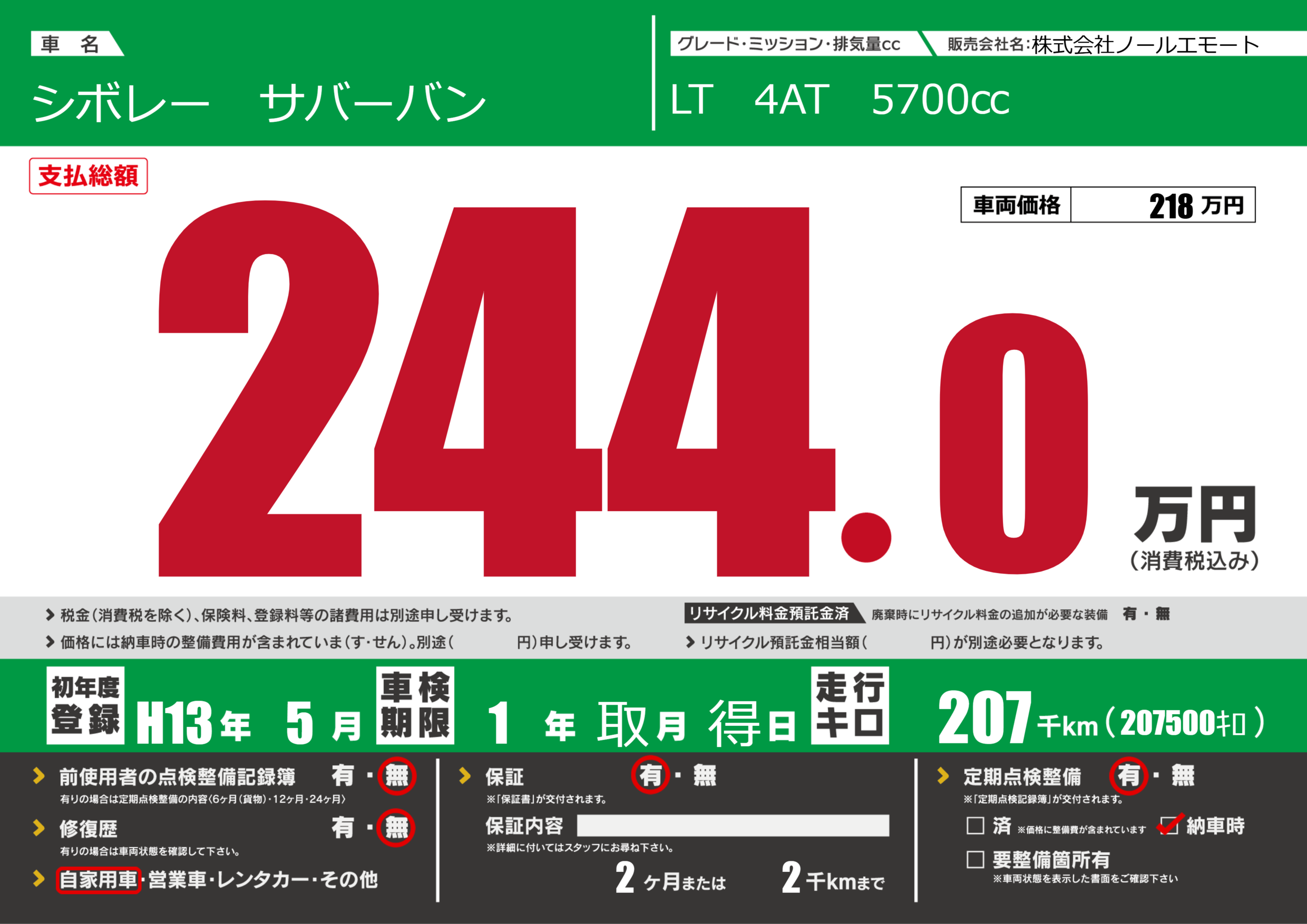 | 走行キロ | 20.7万km | 初年度登録 | H13年5月 |