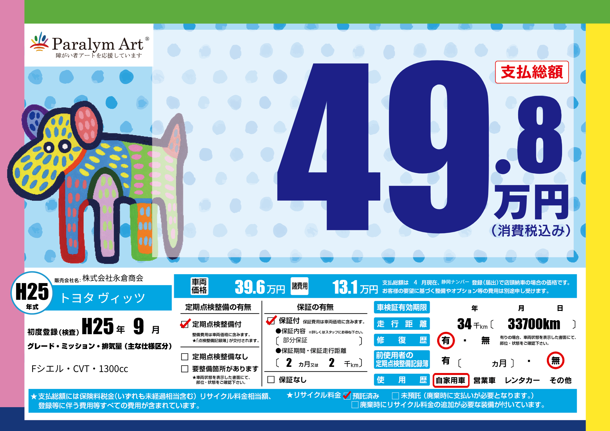 | リサイクル料金 預託済 |
