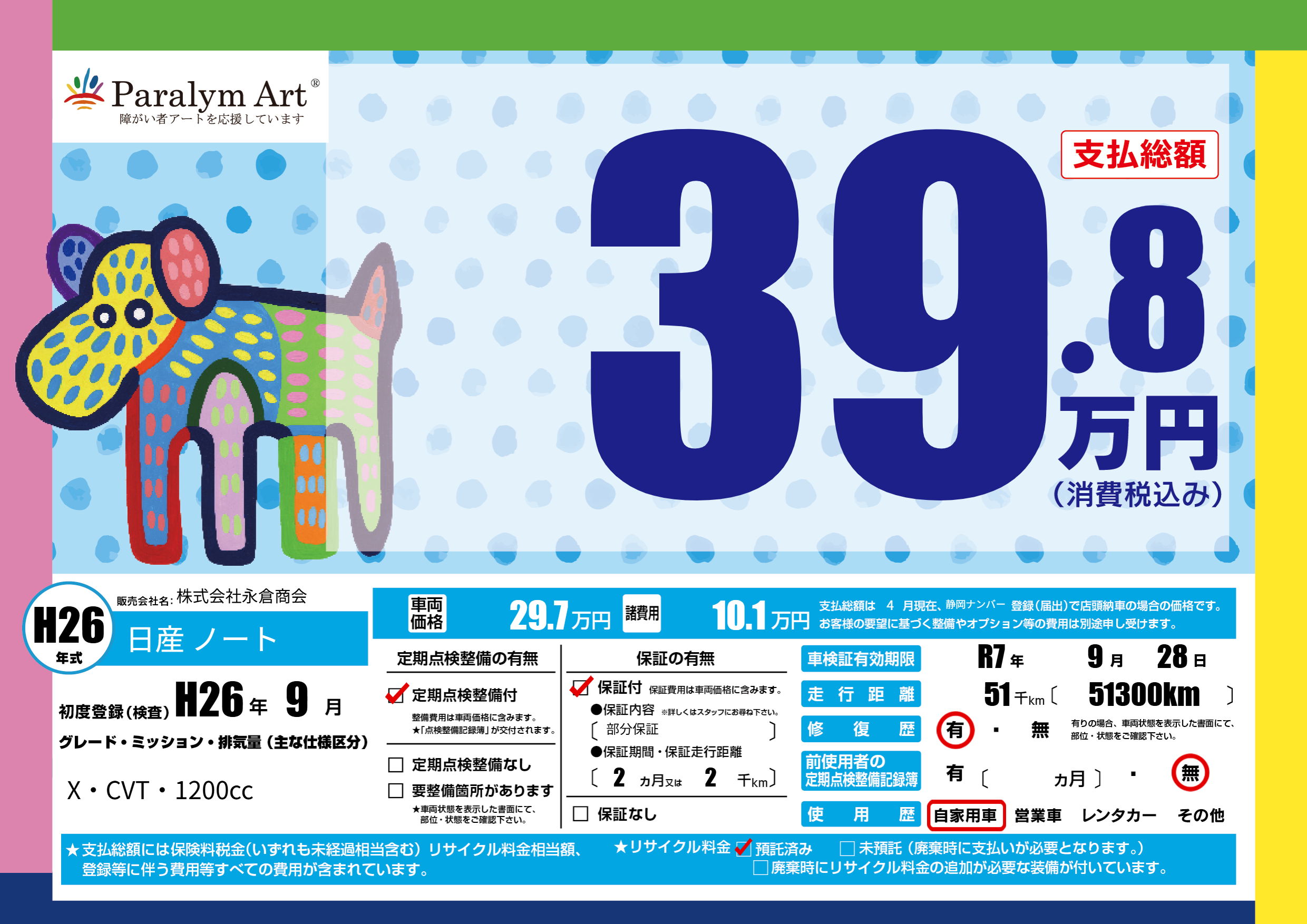 | 車名 | 日産 ノート | グレード ミッション 排気量 |