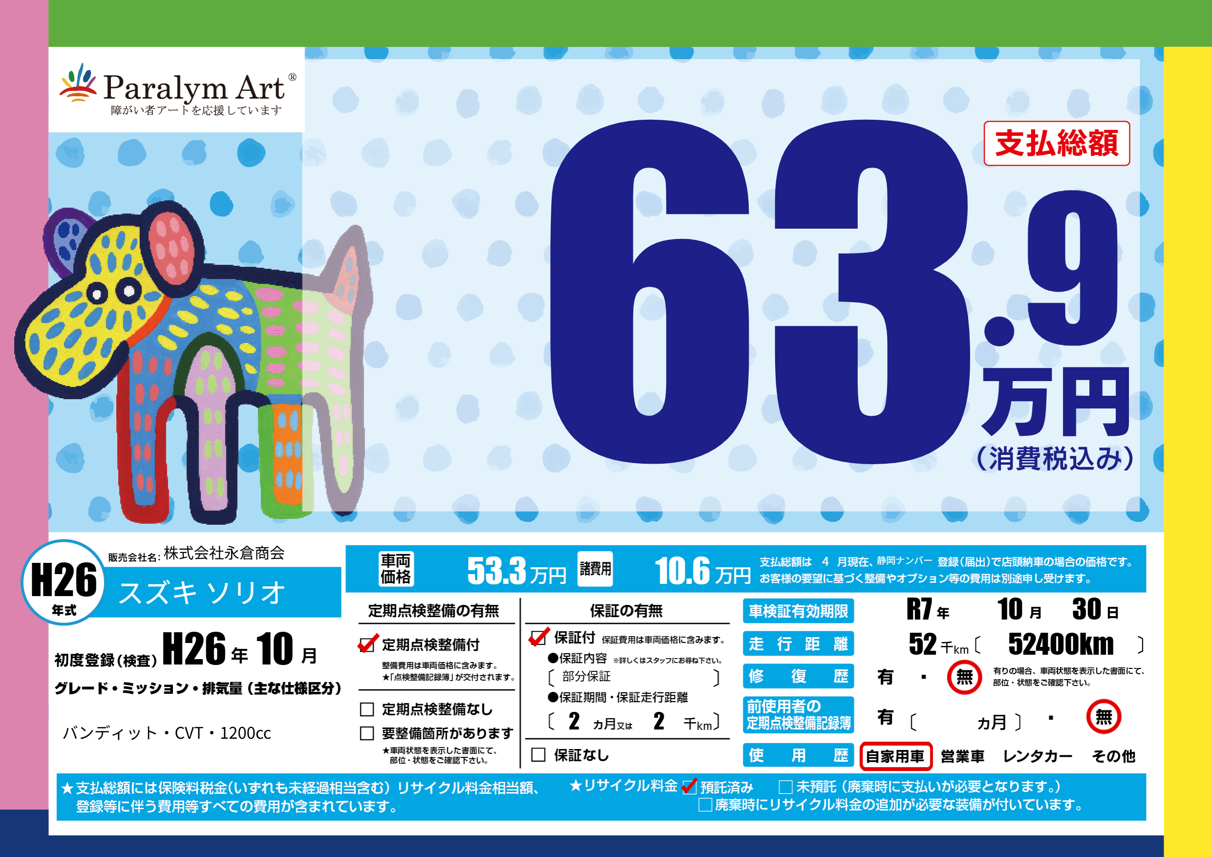 | 車名 | スズキ ソリオ | グレード ミッション 排気量 |