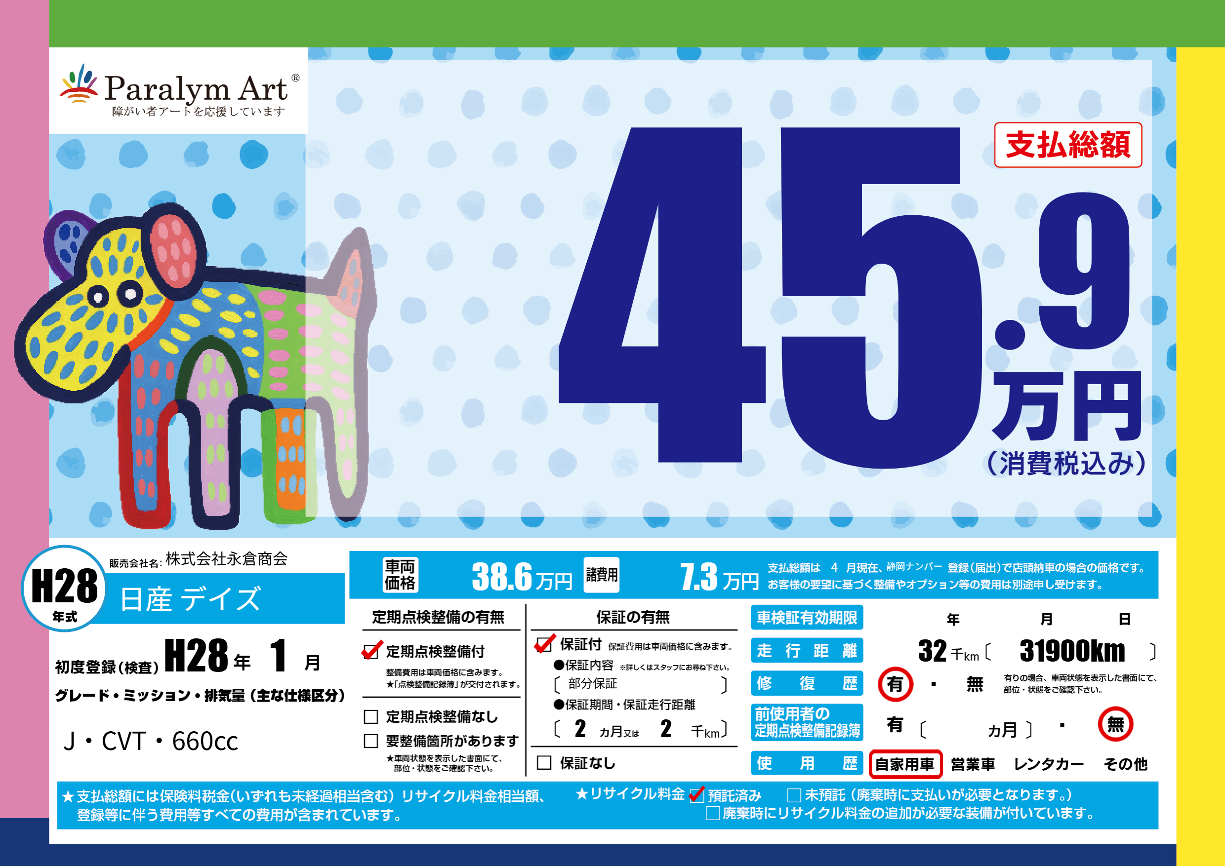 | 車名 | 日産 デイズ | グレード ミッション 排気量 |