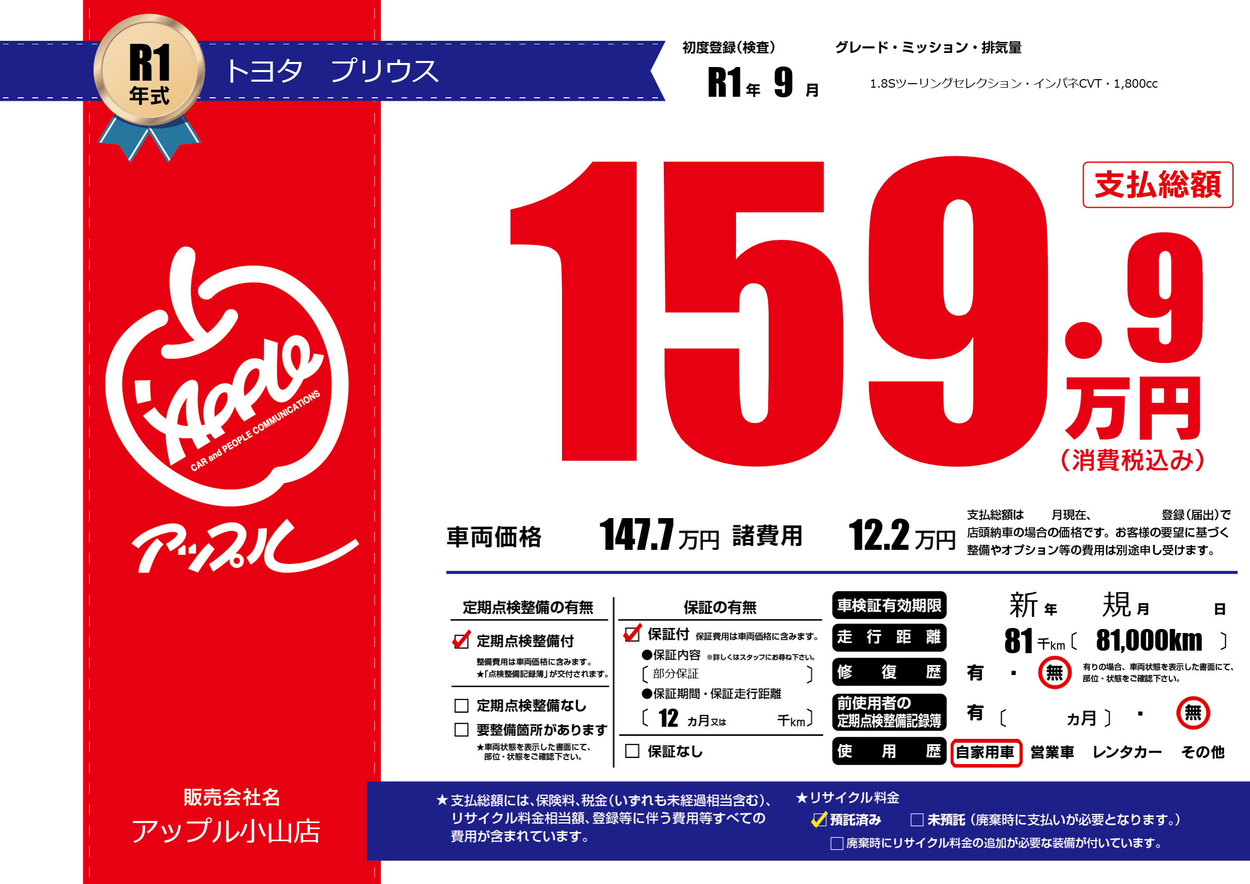| 車名 | トヨタ プリウス | グレード ミッション 排気量 |