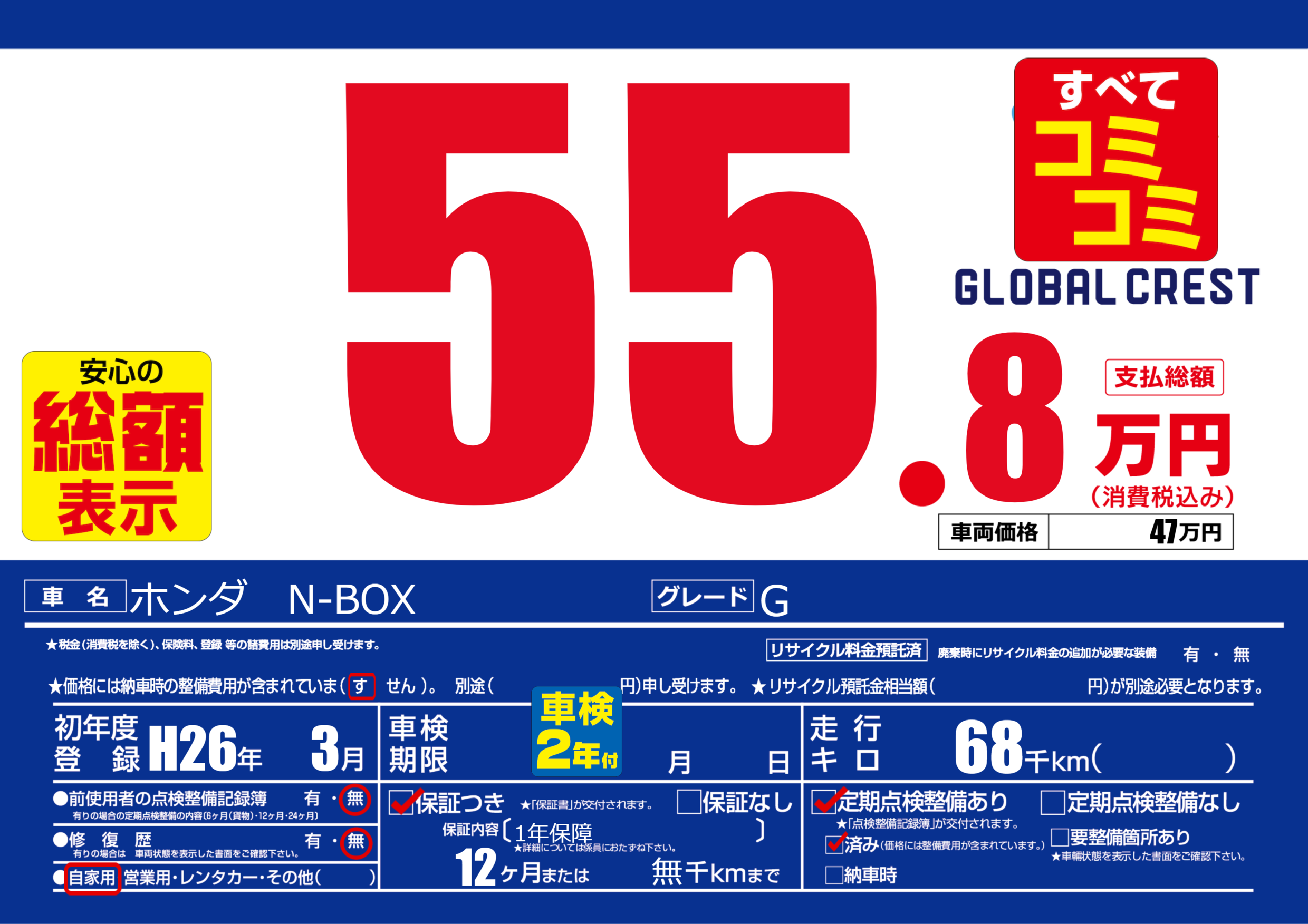 | 定期点検整備 | 定期点検整備あり 定期点検整備済み | ||