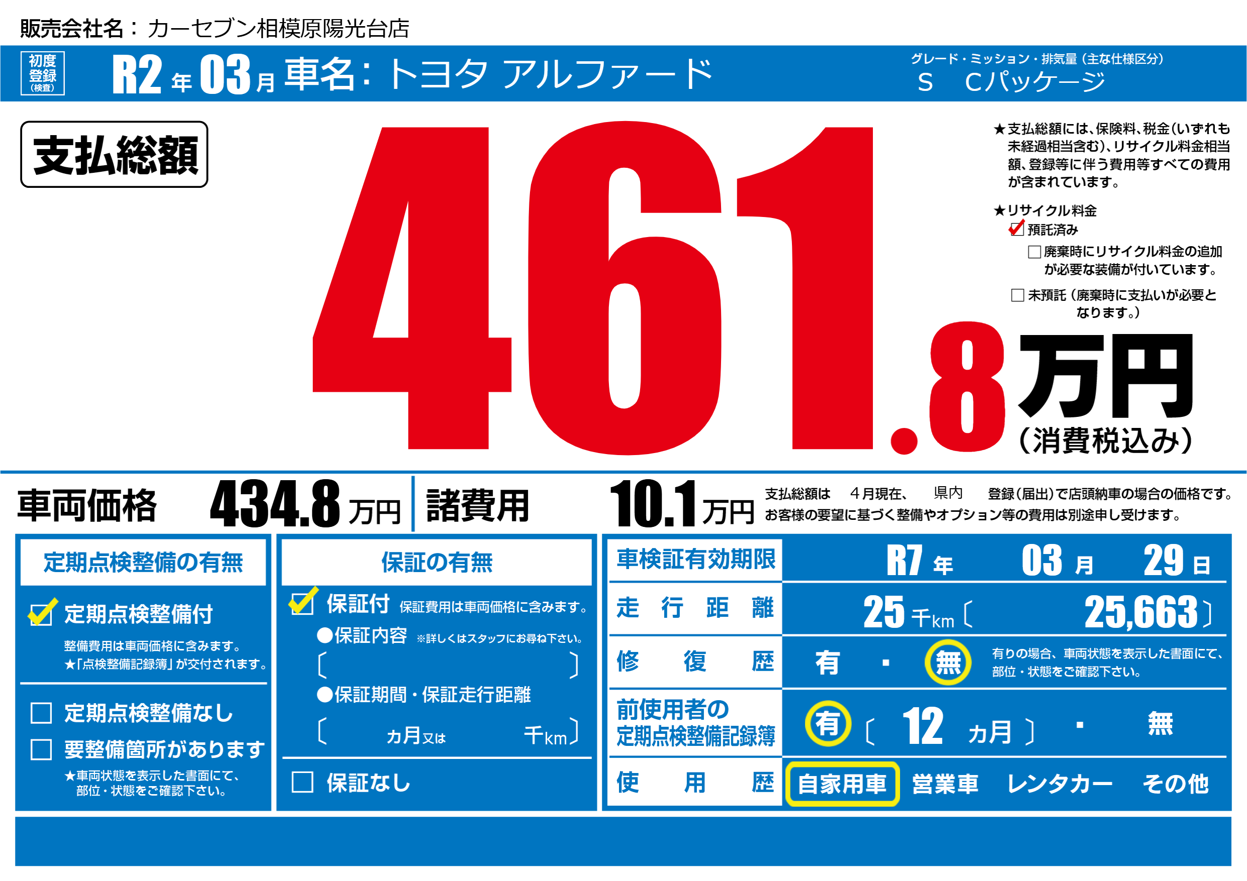 | 車検制限 | R7年 03月 29日 | ||