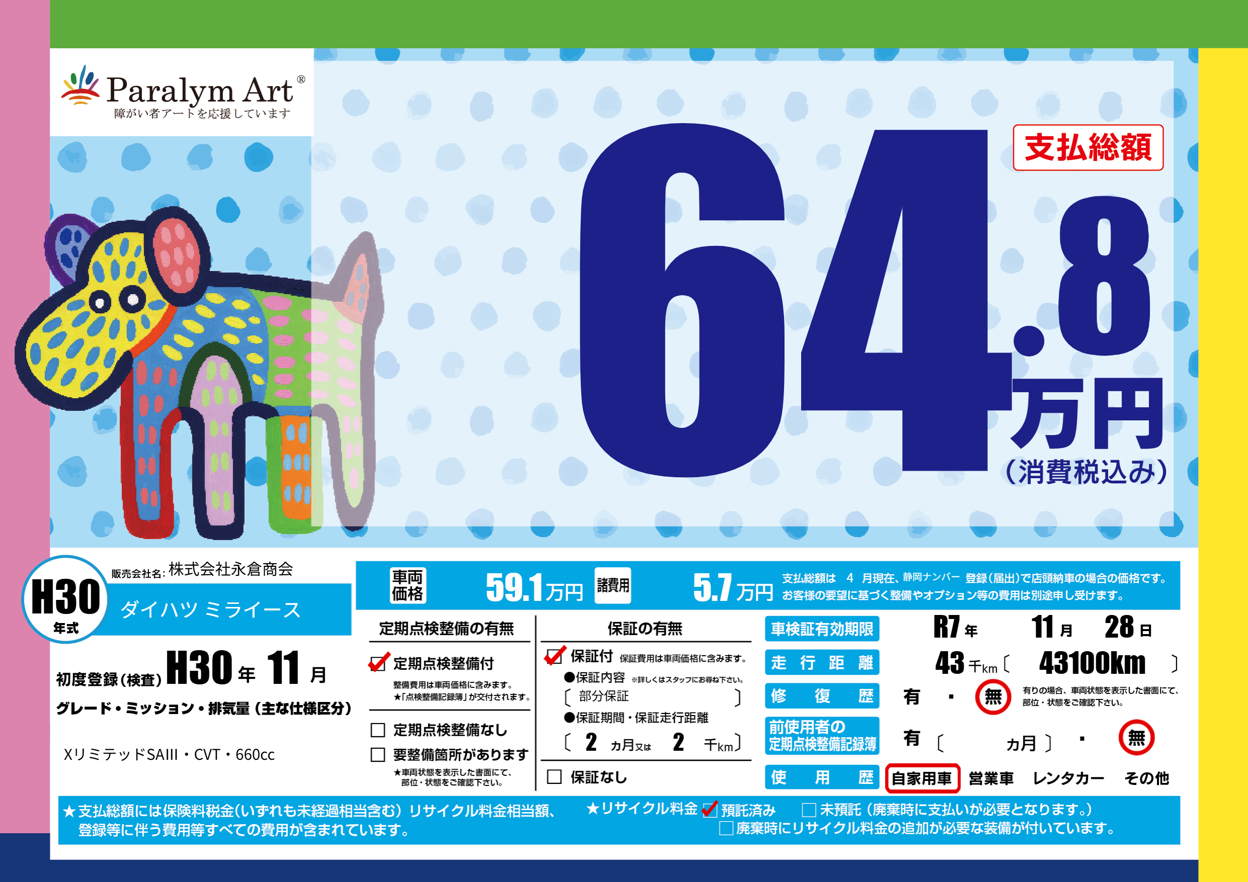 | 走行キロ | 4.3万km | 初年度登録 | H30年11月 |