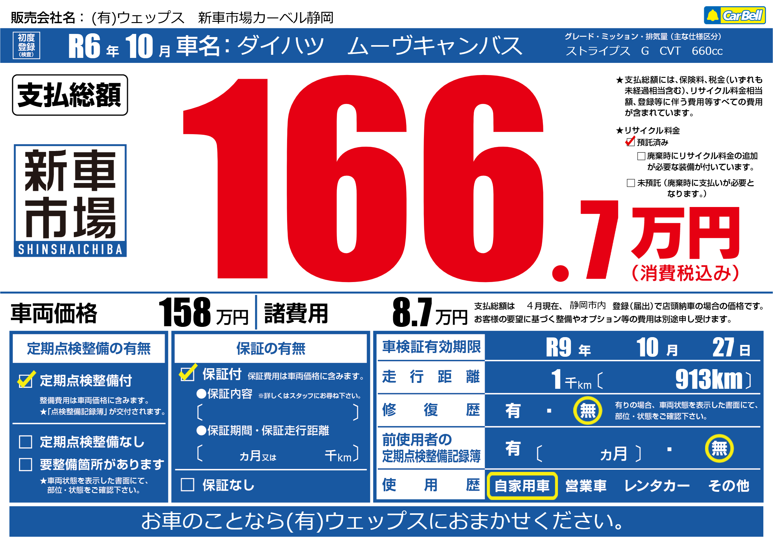 なし | 車検制限 | R9年10月27月 |