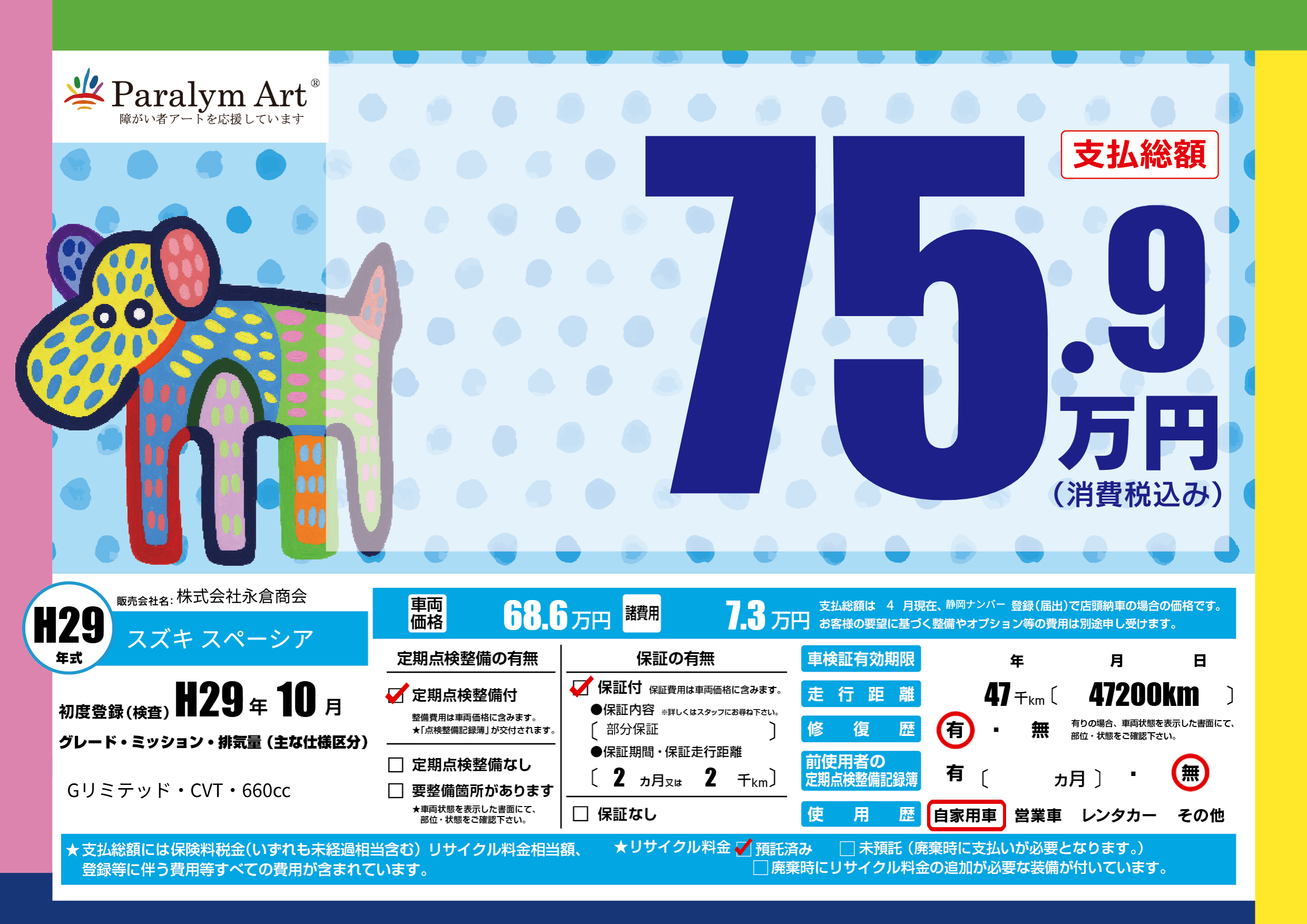 | 走行キロ | 4.7万km | 初年度登録 | H29年10月 |