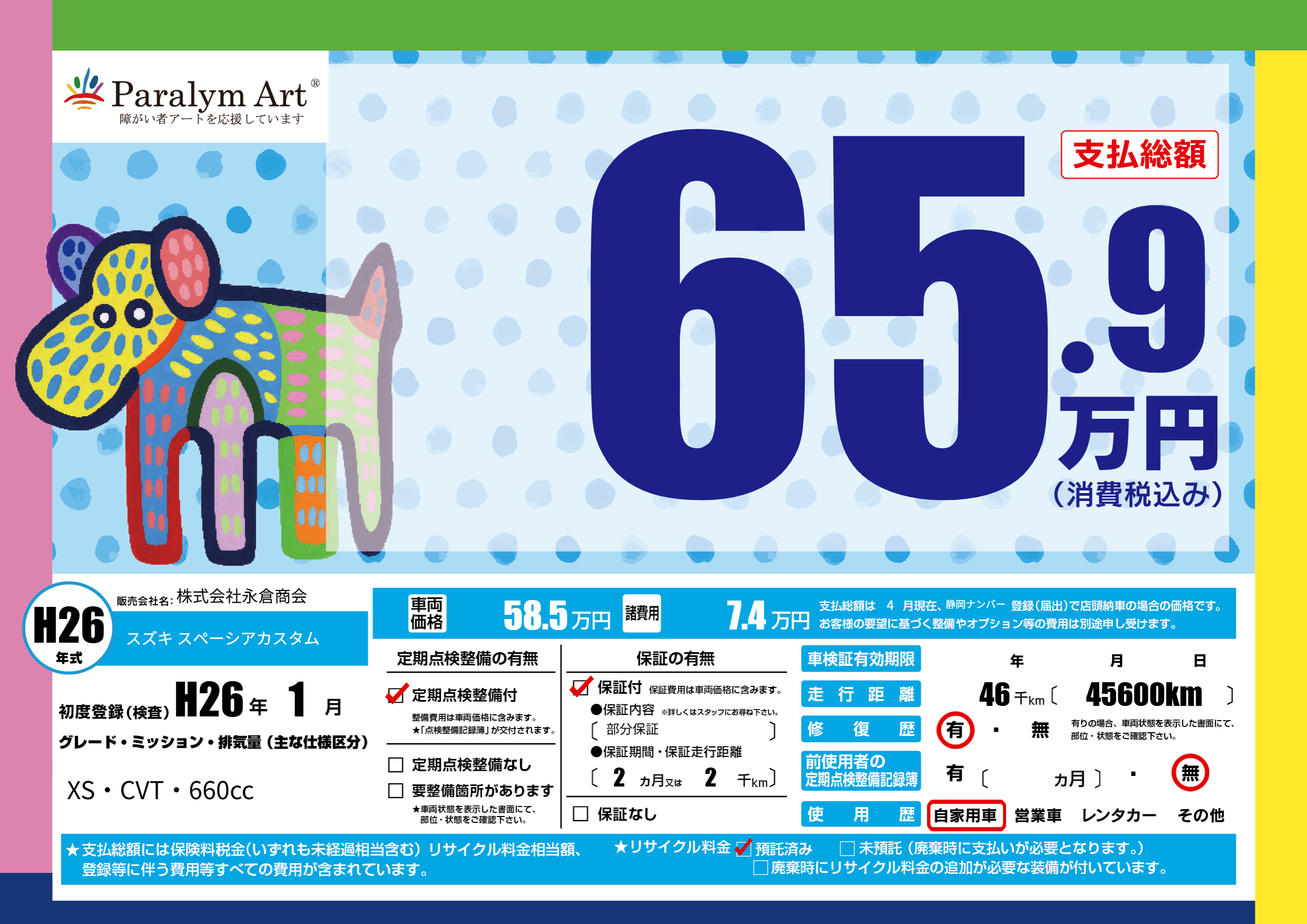| 走行キロ | 4.6万km | 初年度登録 | H26年1月 |