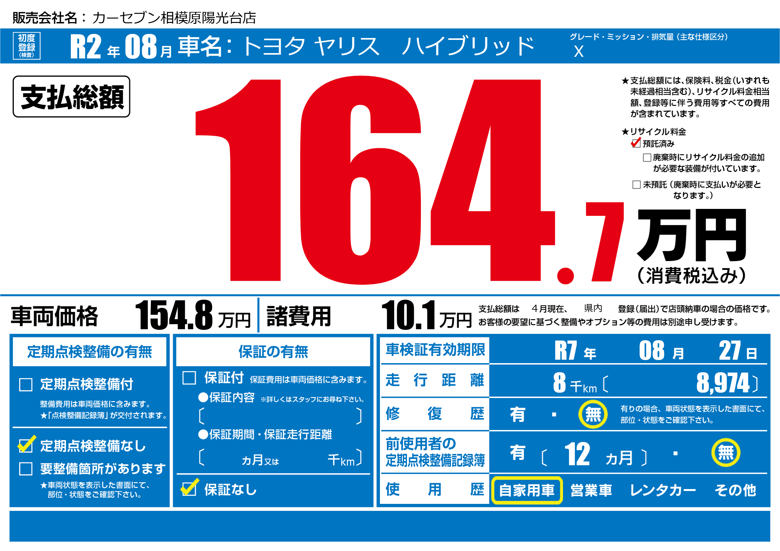 | 車検制限 | R7年 08月 27日 | ||