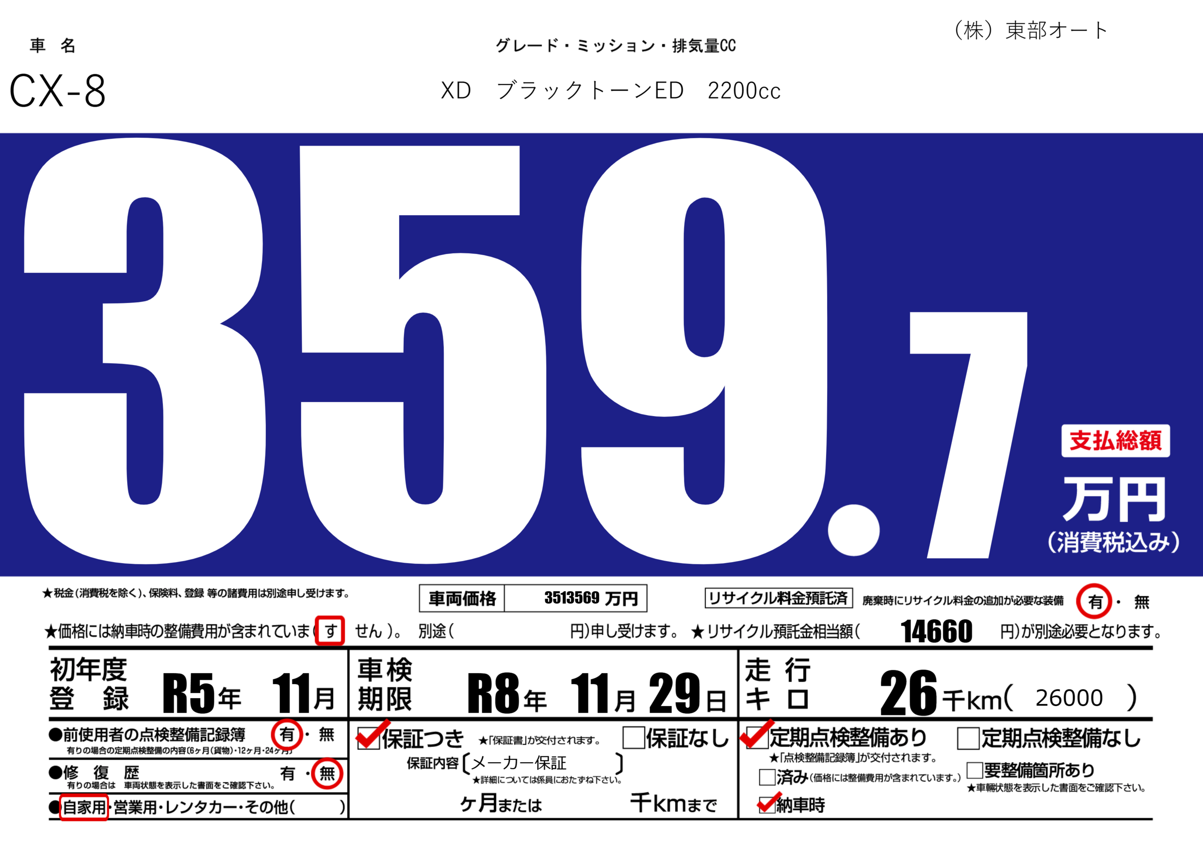 | 車名 | CX-8 | グレード ミッション 排気量 |