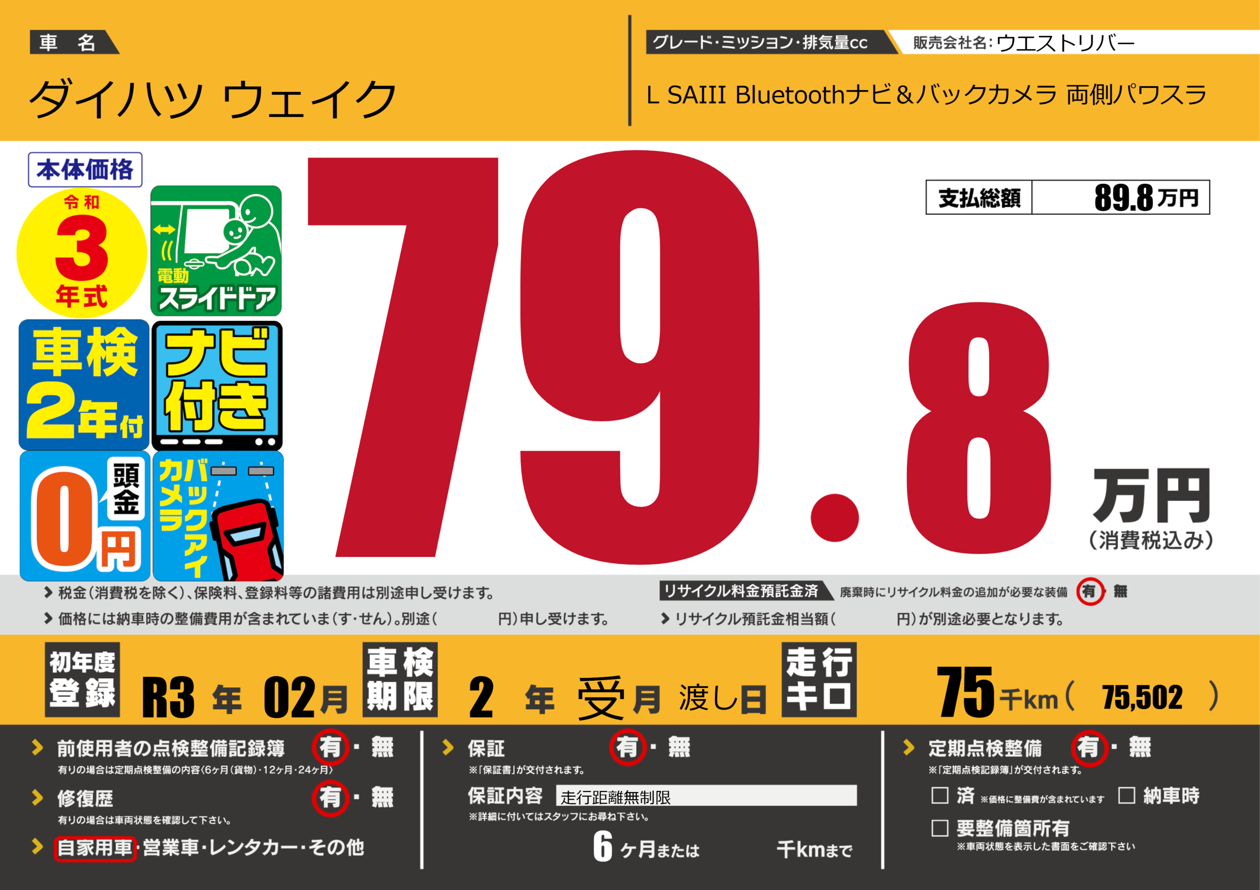 | 走行キロ | 7.5万km | ||