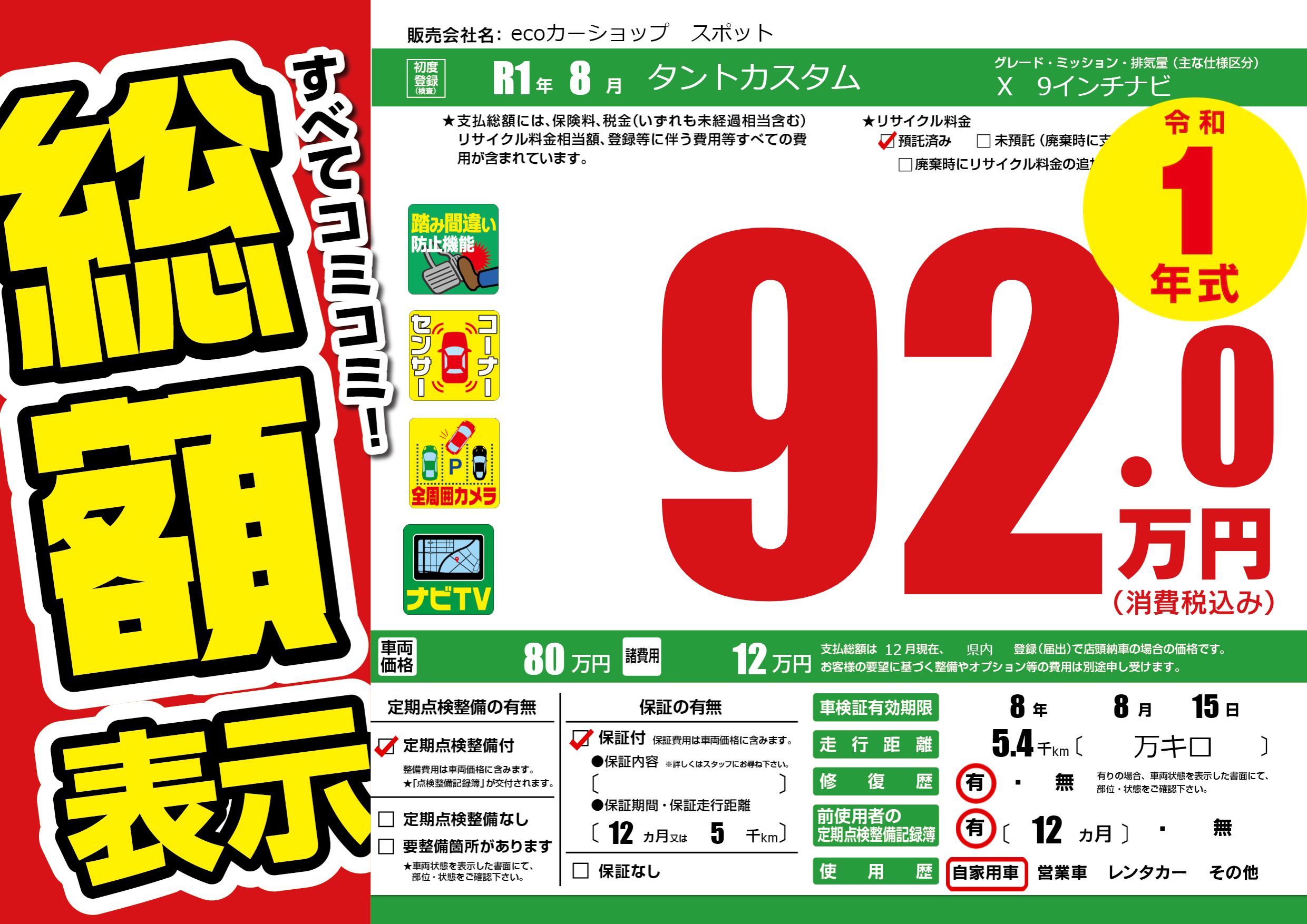 | 車名 | タントカスタム | グレード ミッション 排気量 |