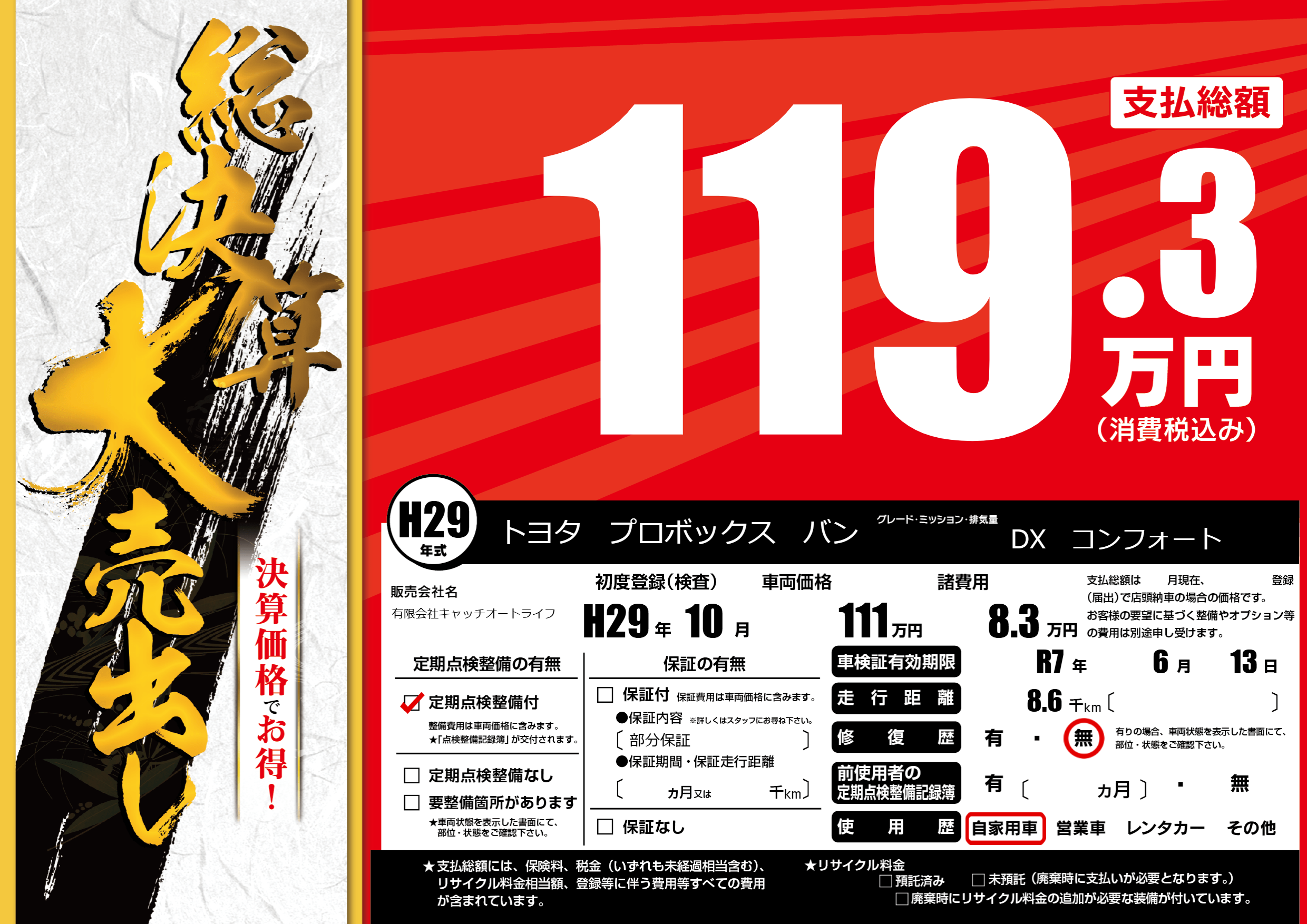 | 車検制限 | R7年 6月 13日 | ||