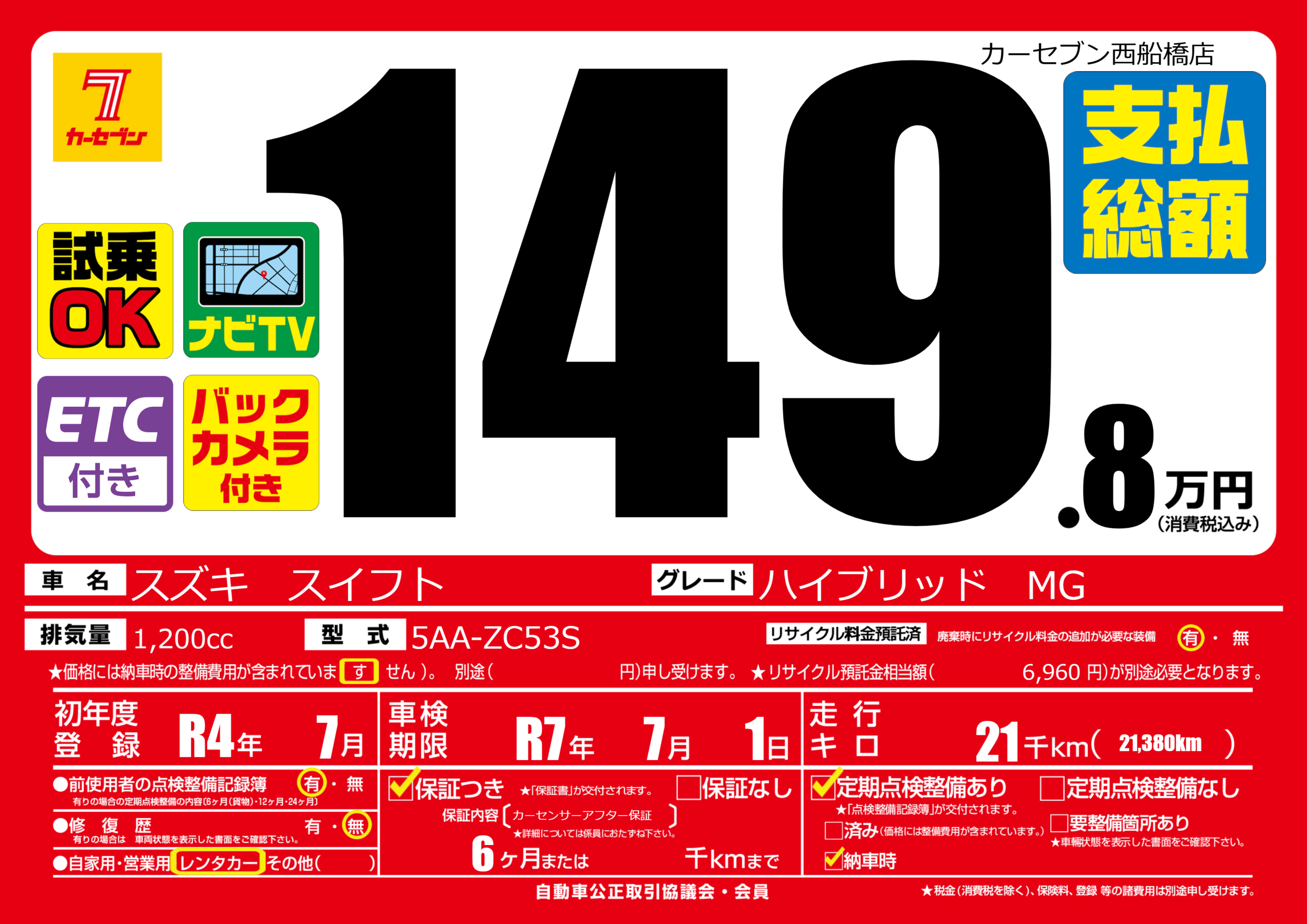 | 車検制限 | R7年 7月 1日 | ||