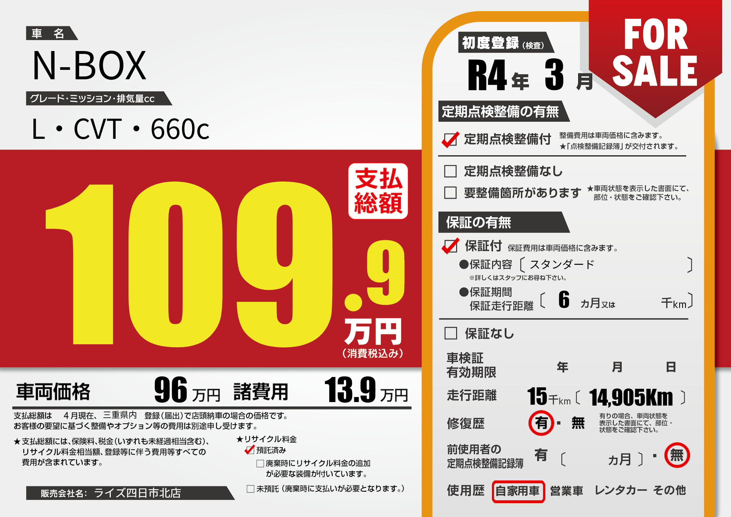 初年度登録 R4年3月