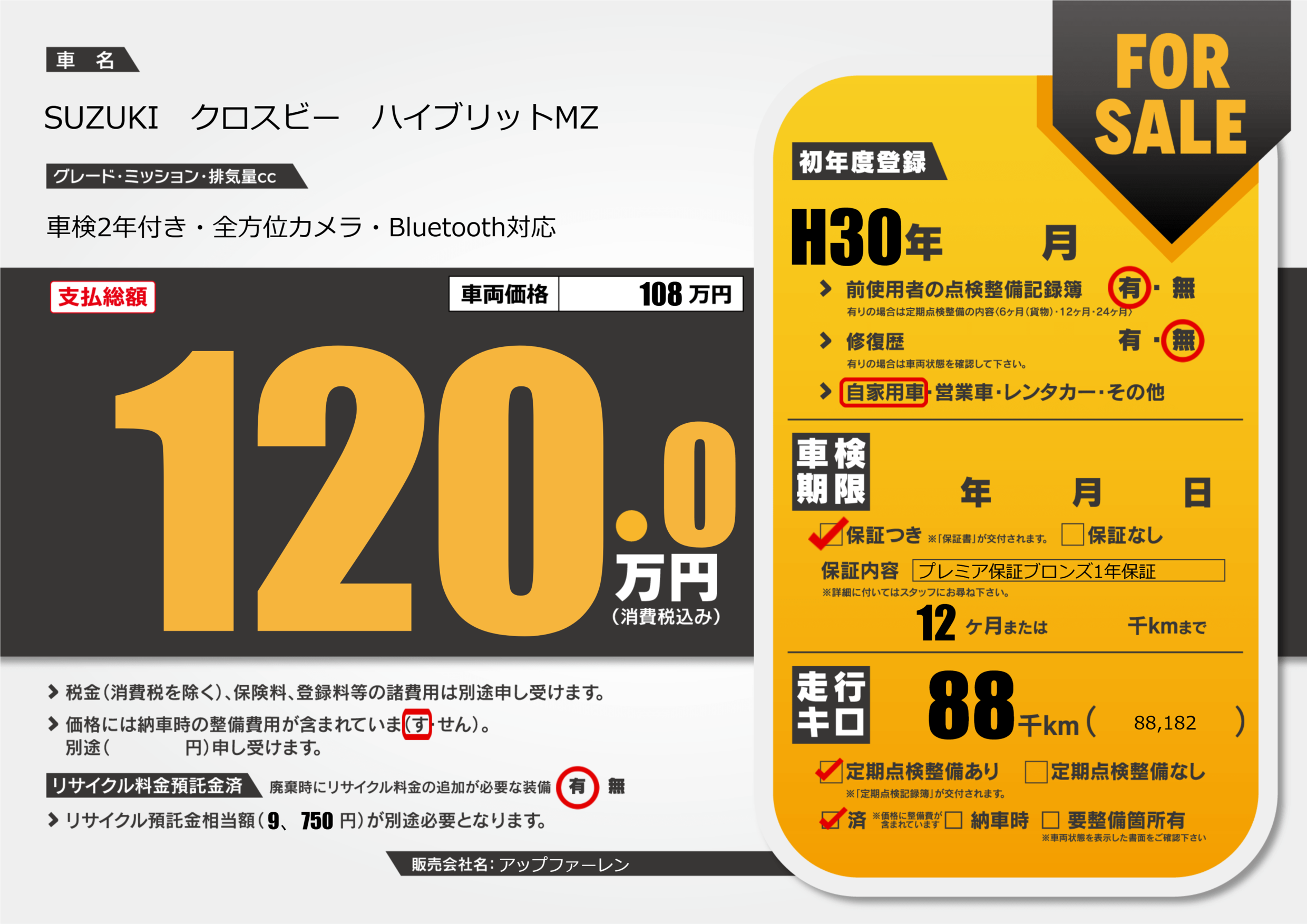 | 定期点検整備 | 定期点検整備あり 定期点検整備済み | ||