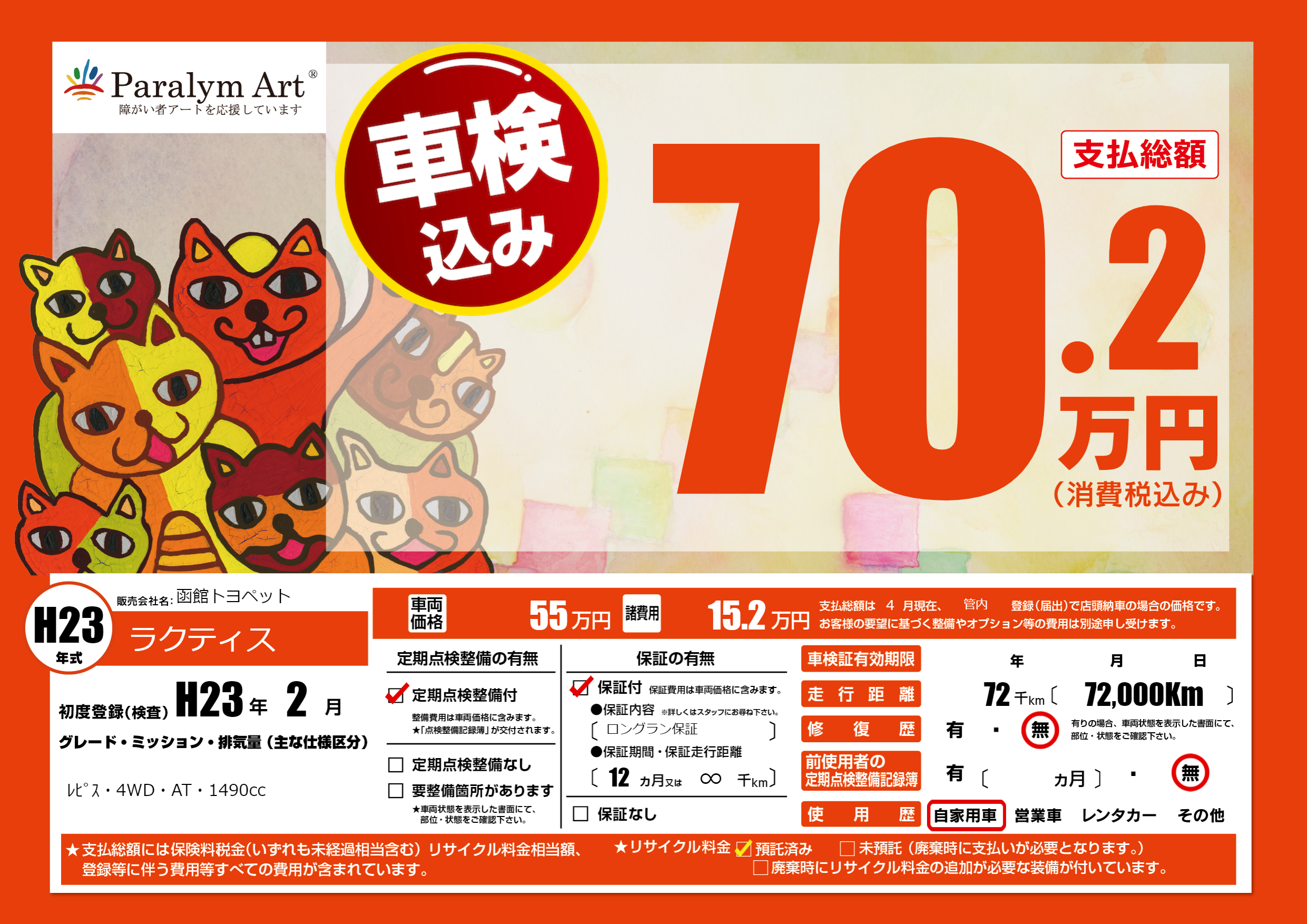 | 車名 | ラクティス | グレード ミッション 排気量 |