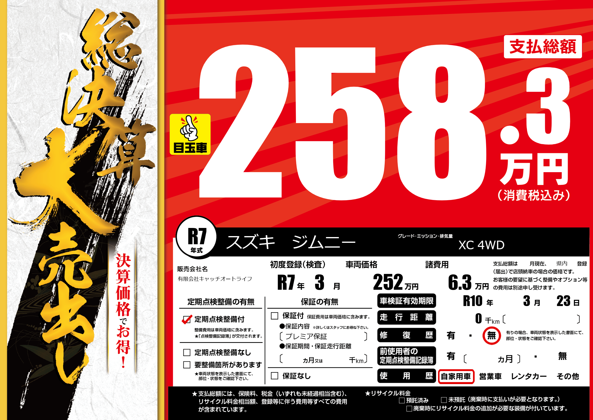| 走行キロ | - | 初年度登録 | R7年3月 |