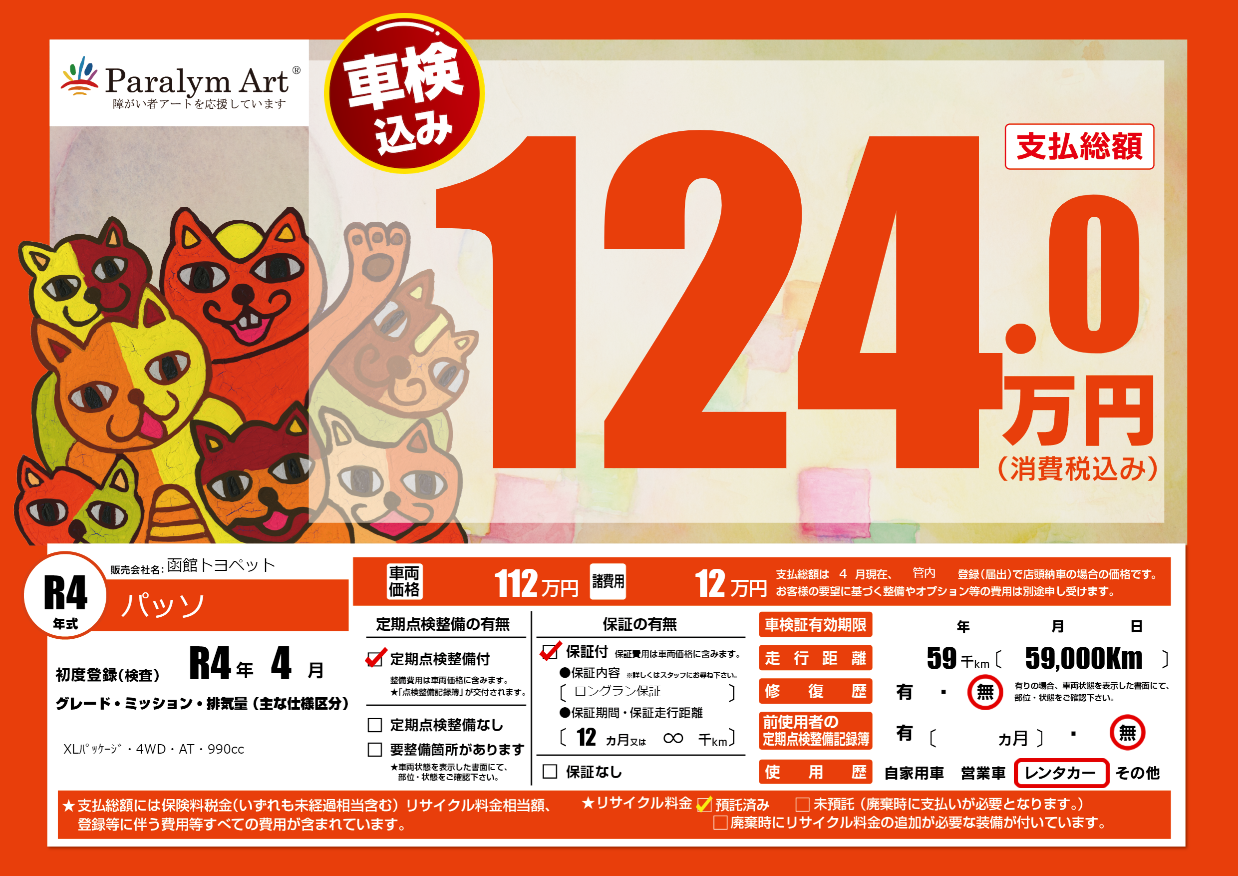 | 車名 | パッソ | グレード ミッション 排気量 |