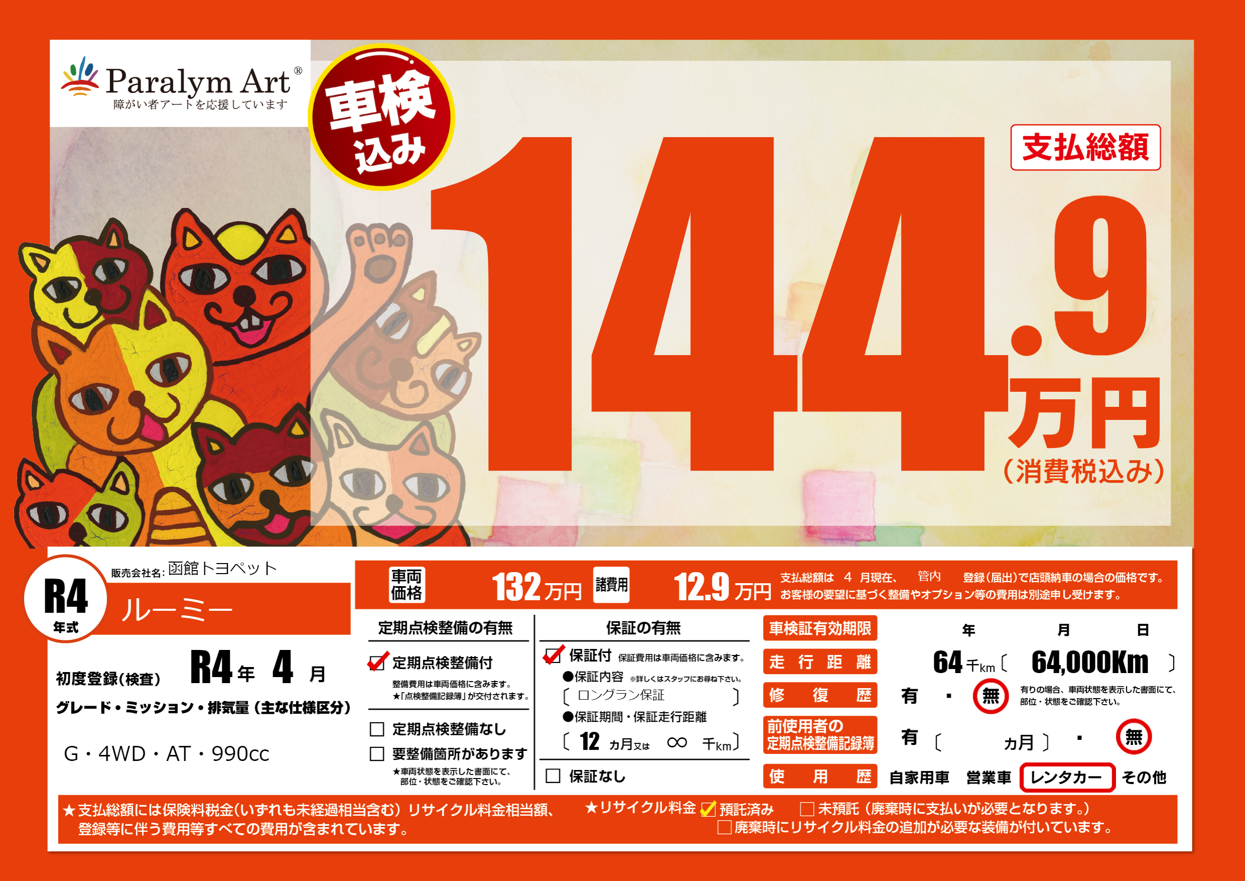 | 走行キロ | 6.4万km | 初年度登録 | R4年4月 |