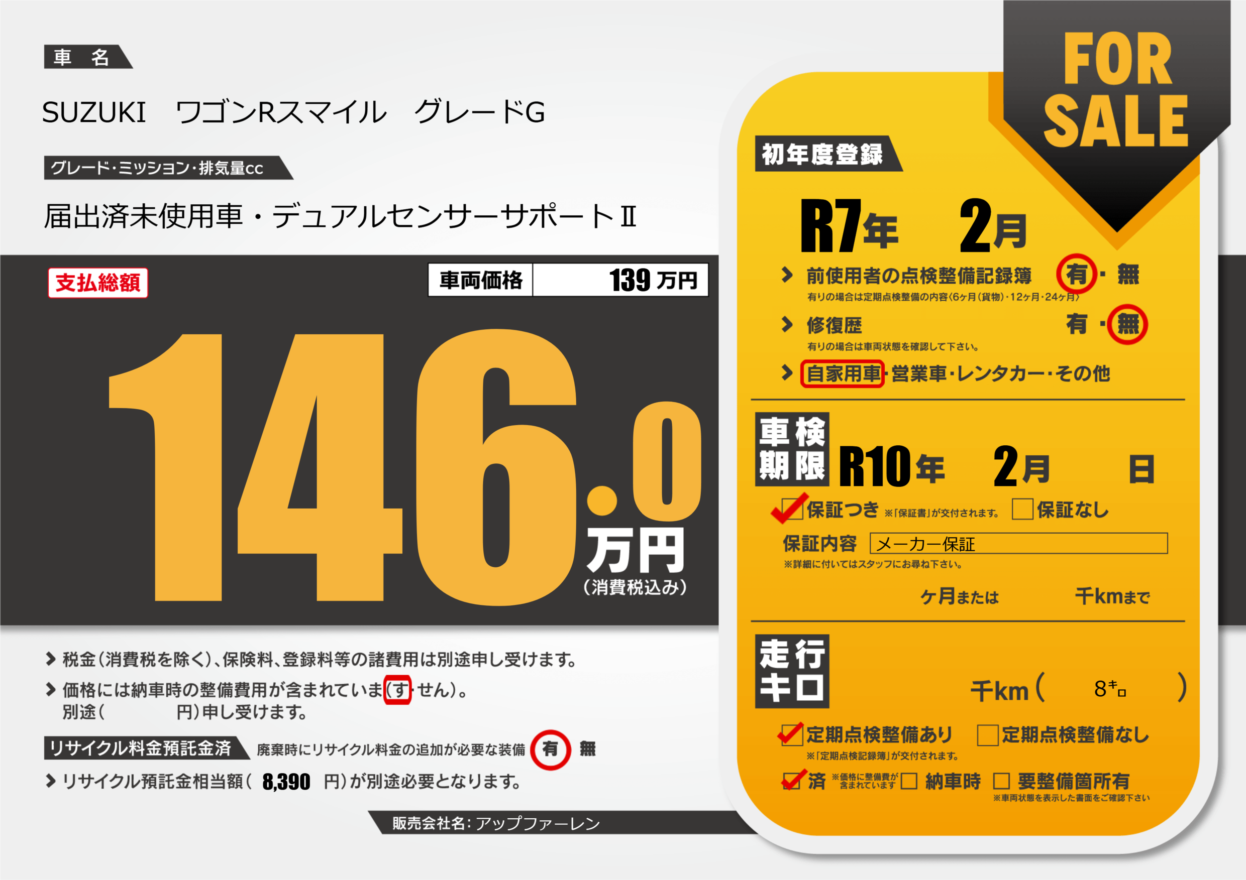 | 定期点検整備 | 定期点検整備あり 定期点検整備済み | ||