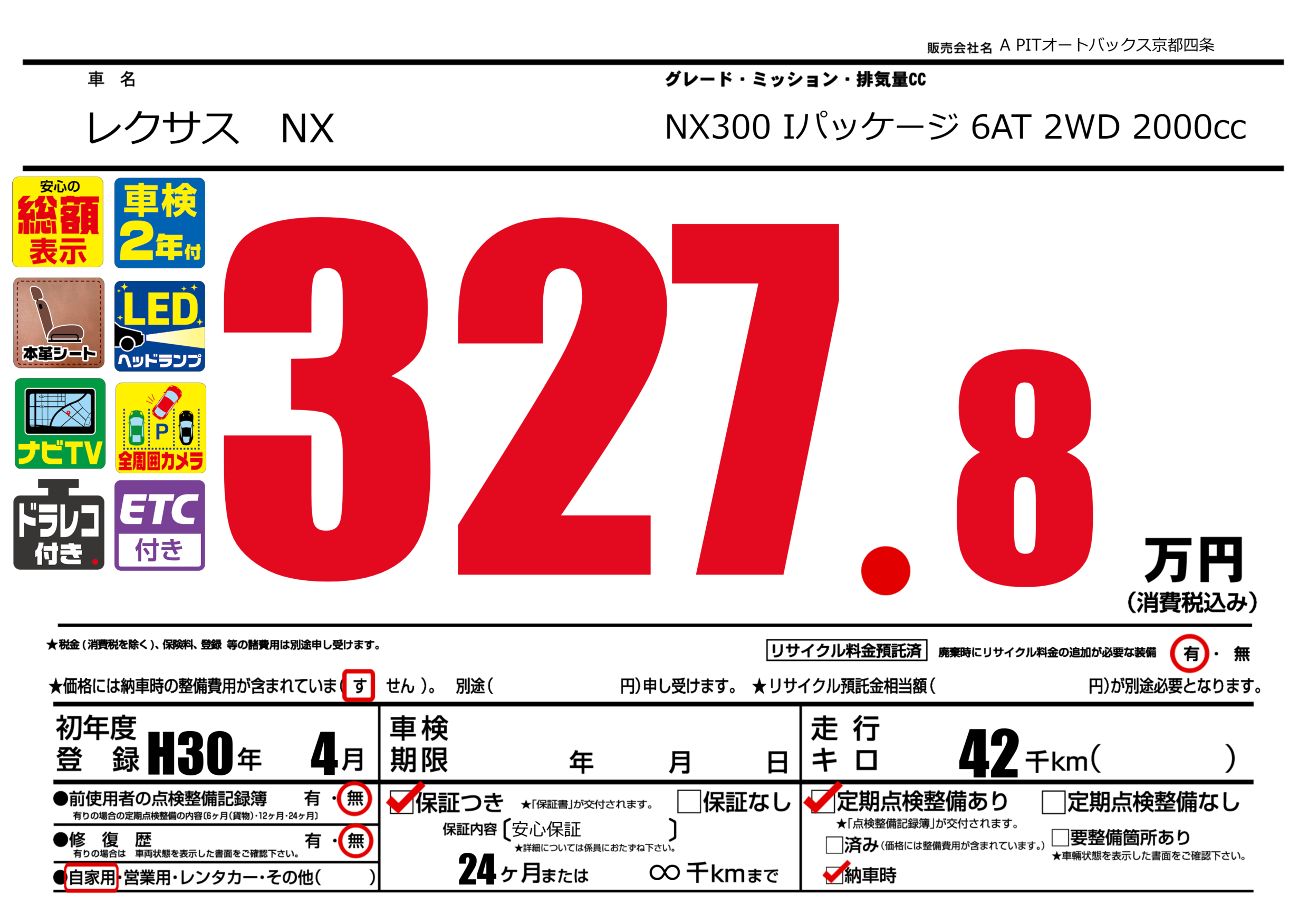 | 車名 | レクサス NX | グレード ミッション 排気量 |