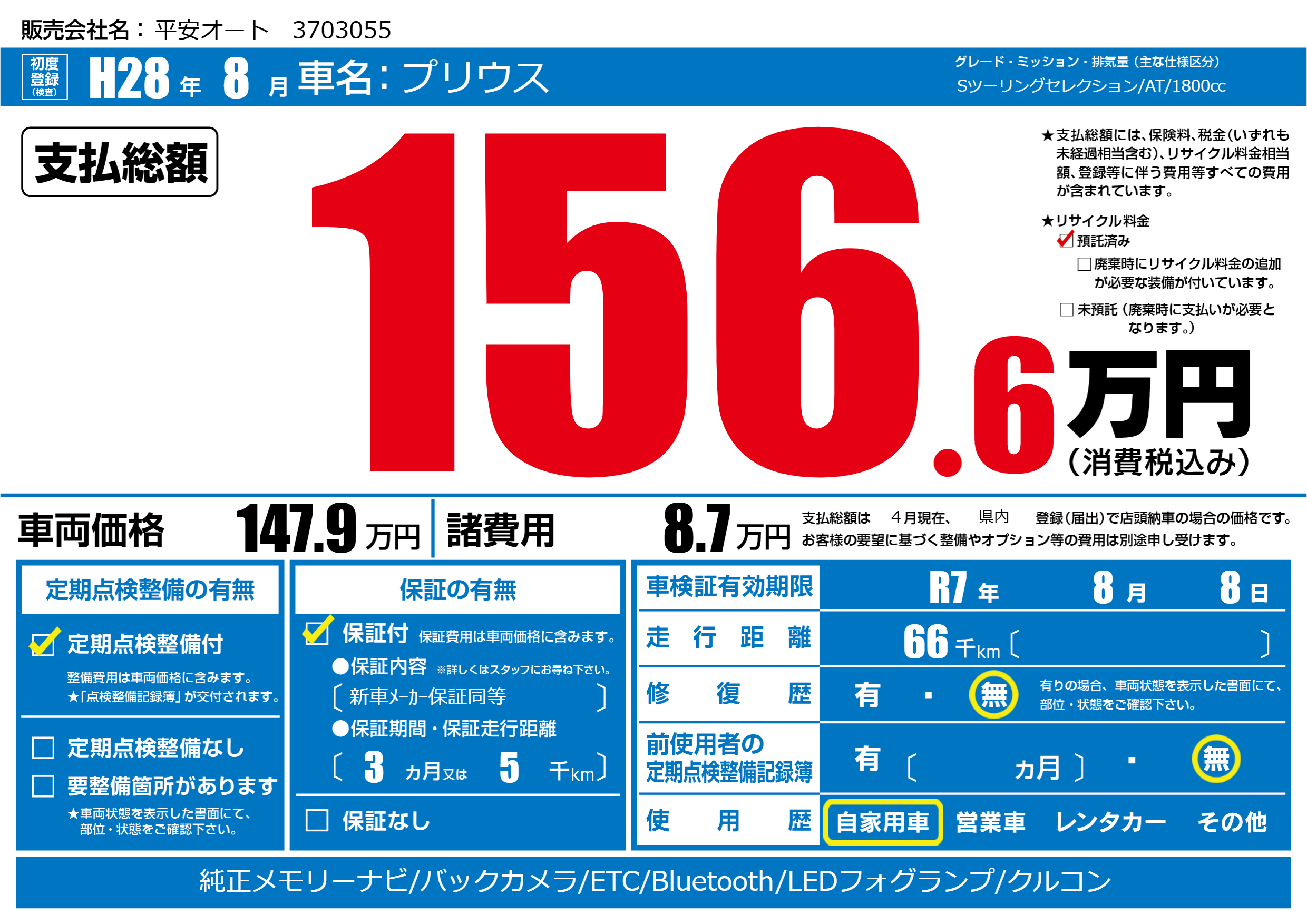 | 定期点検整備 | 定期点検整備あり | ||