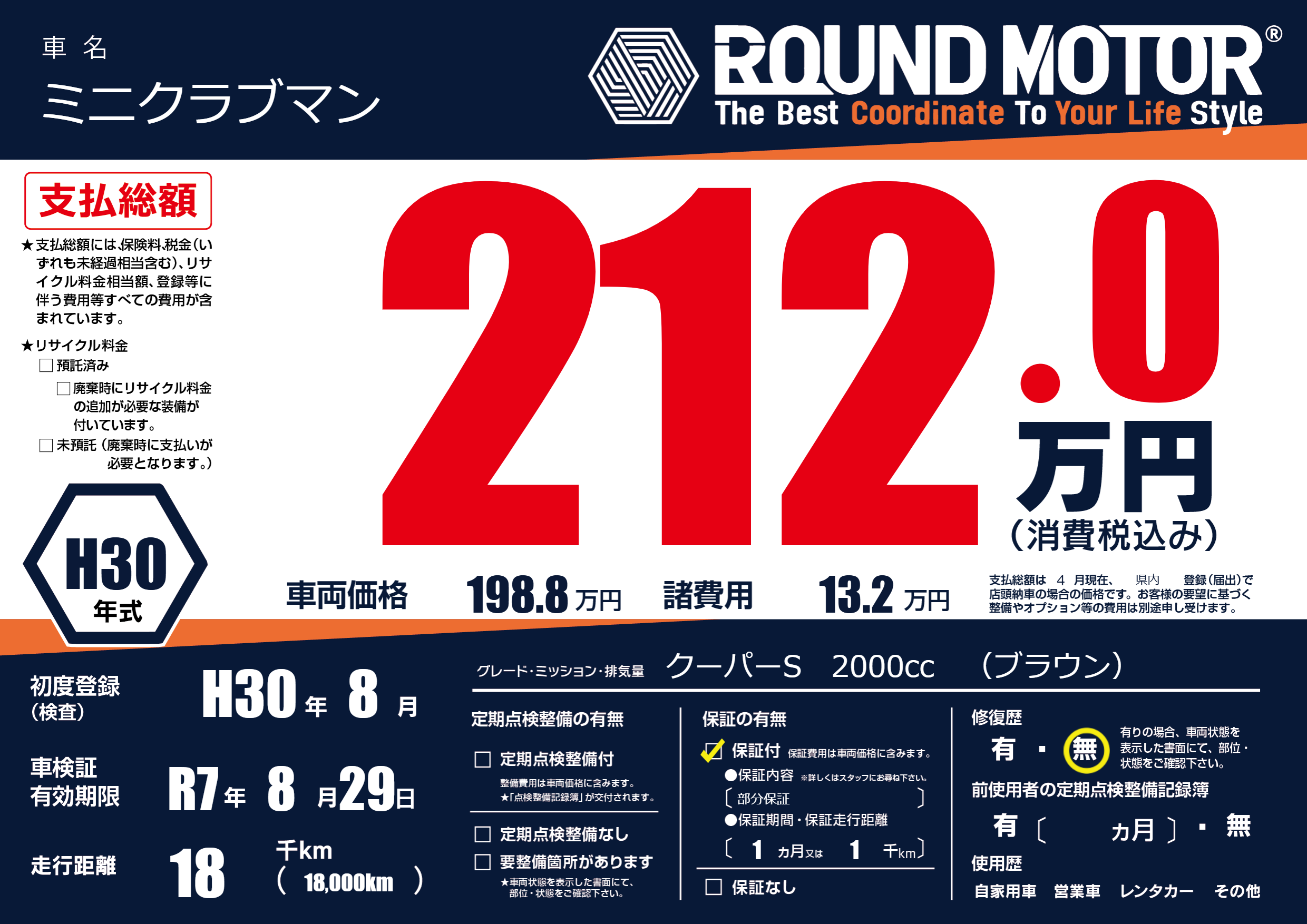 | 車名 | ミニクラブマン | グレード ミッション 排気量 |