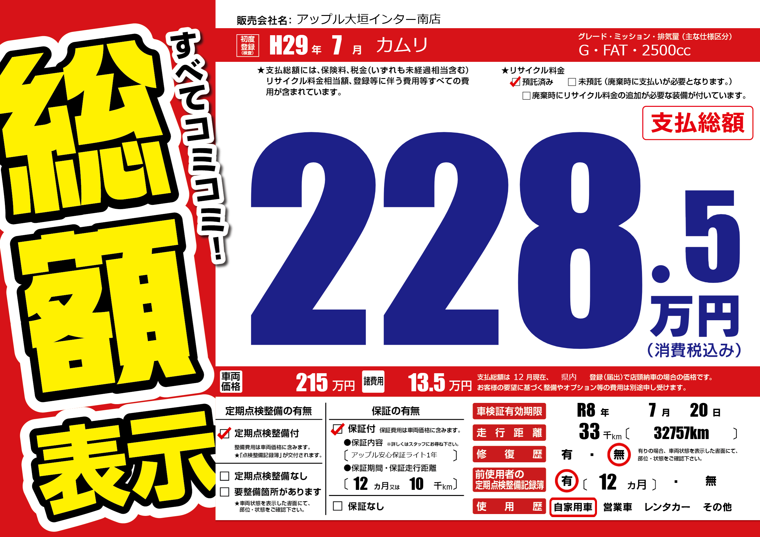| 車検制限 | R8年 7月 20日 | ||