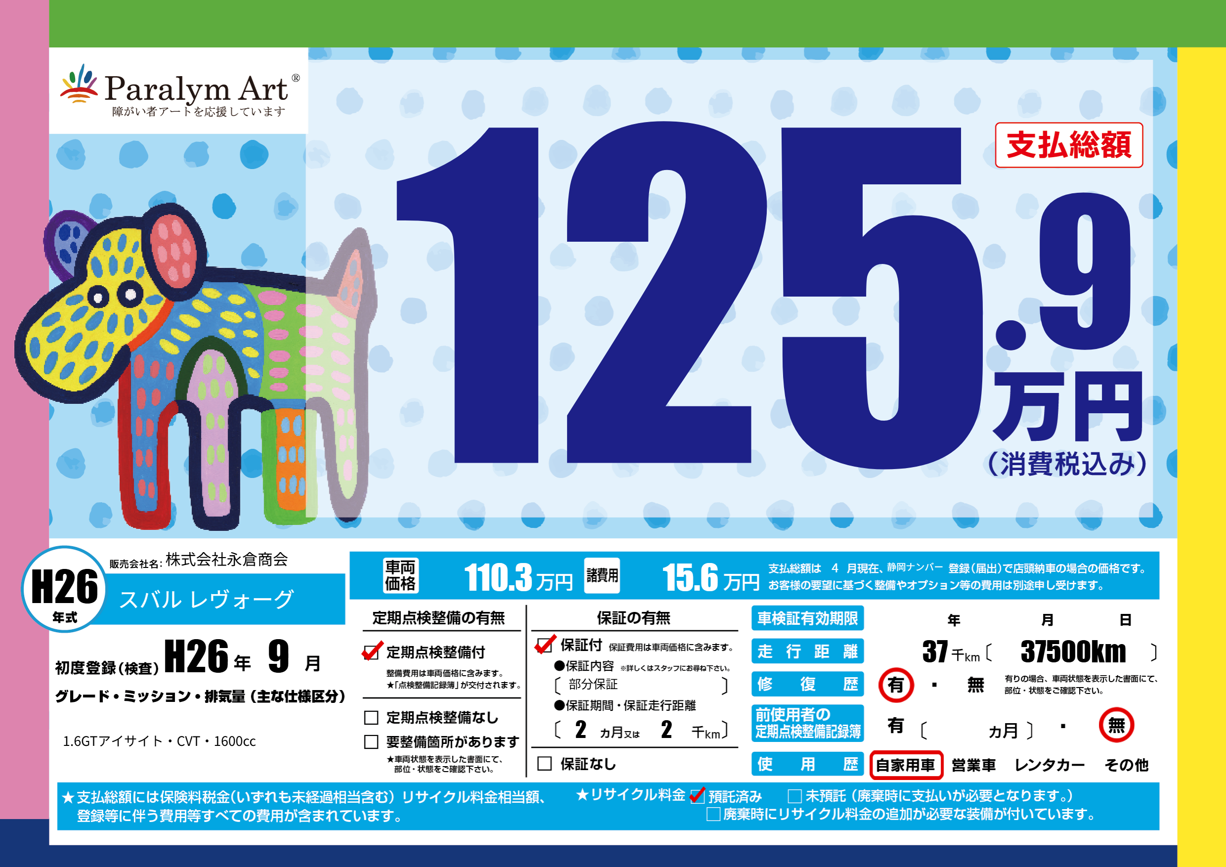 | 走行キロ | 3.7万km | 初年度登録 | H26年9月 |